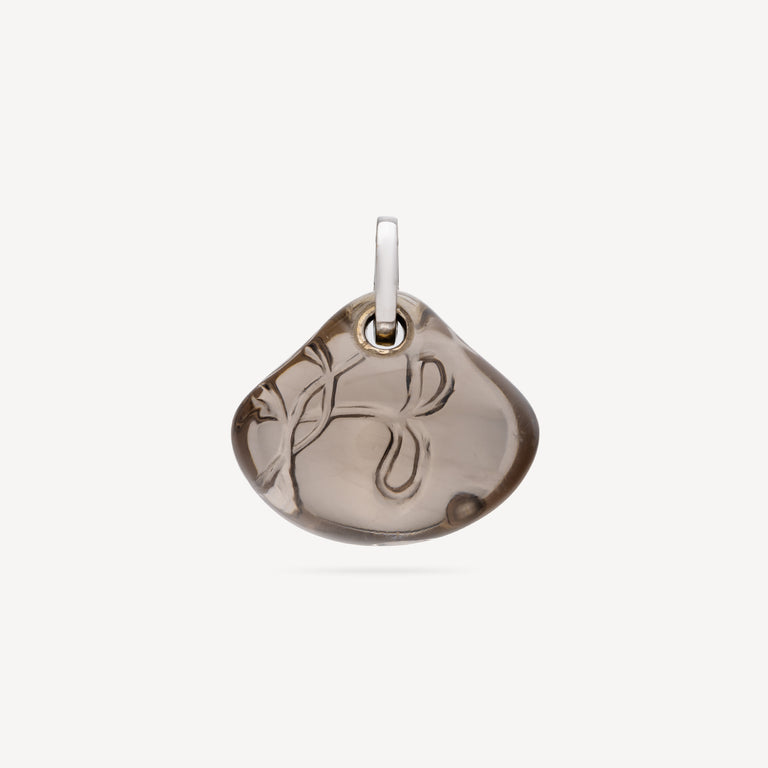 Smoky quartz pendant engraved with a flower of life with white gold clasp.