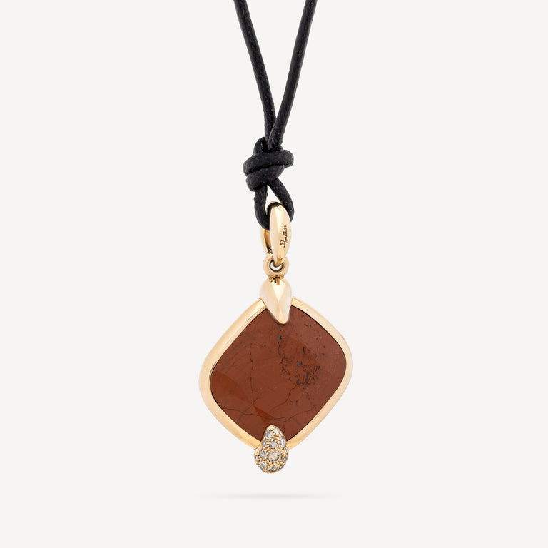 Magnificent pendant necklace in yellow gold adorned with a jasper and a diamond-paved claw.