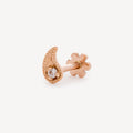 Drop-shaped stud earring in Rose Gold set with a white diamond.