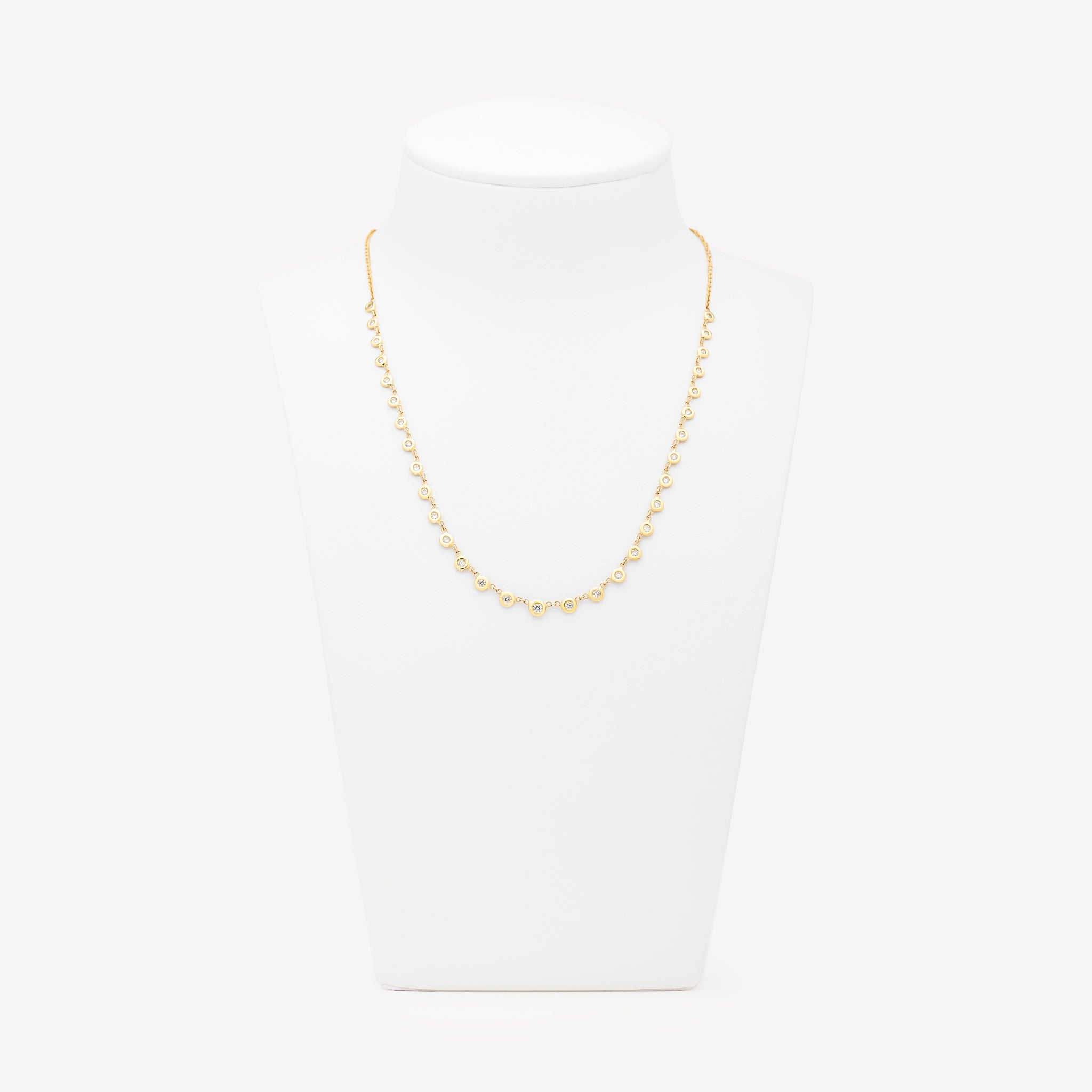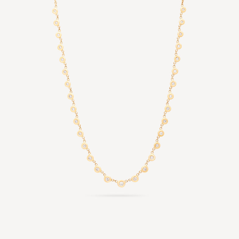 Incarnez la pureté et l'éclat avec le collier Emily signé Jacquie Aiche. Le diamant blanc, symbole de clarté et de lumière intérieure, illumine l'esprit et renforce la connexion à soi-même. Ce collier d'exception présente 31 diamants d'une brillance exceptionnelle, sertis avec précision dans une monture en or jaune. Chaque pierre scintille avec une pureté absolue, créant un halo de lumière autour du cou.