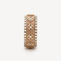 Bague en or rose ornée de deux lignes de diamants blancs et d’une pièce tournante sur le centre.