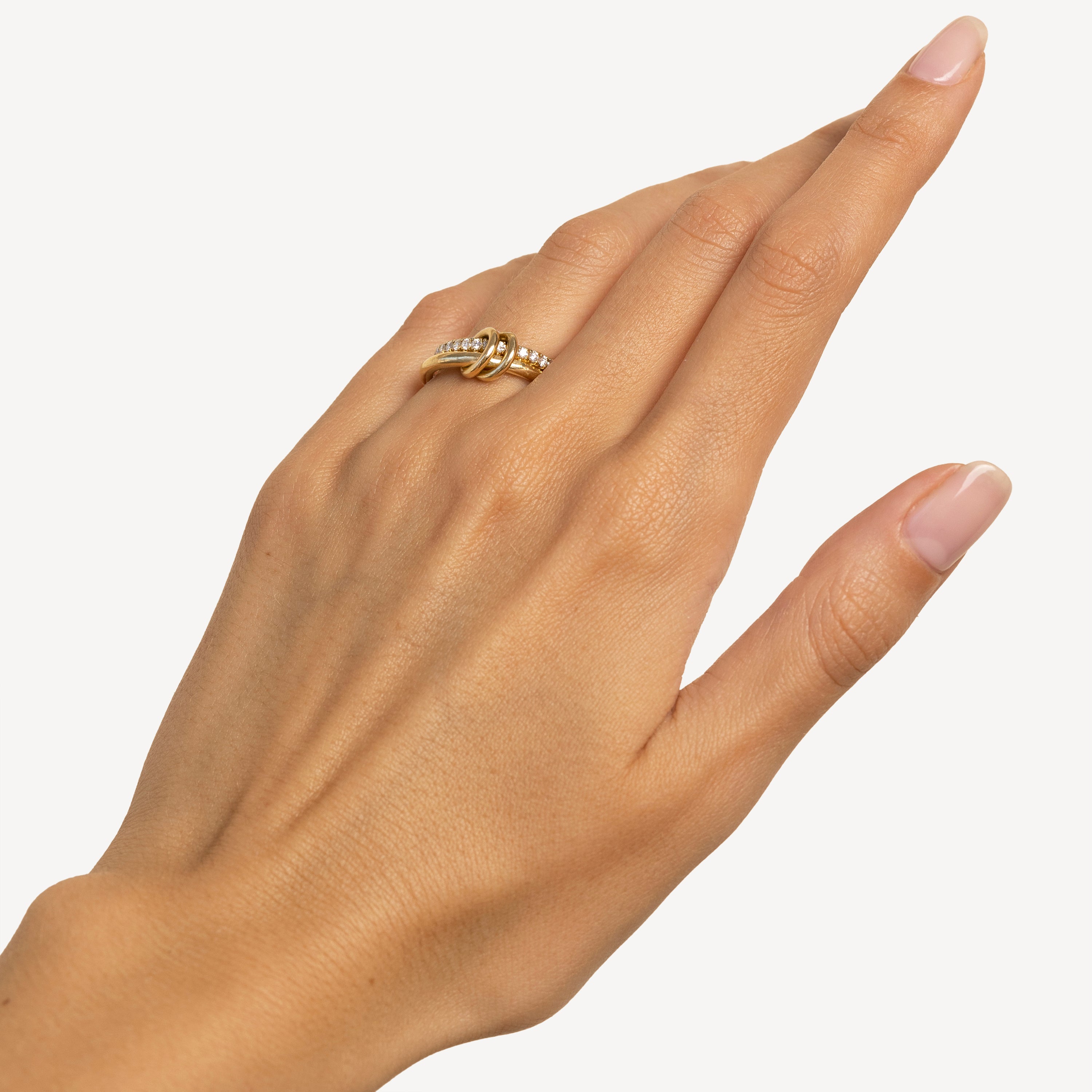 La bague Ceres, symbole d’union, associe deux anneaux liés : un pavé d’éternité et un anneau central, reliés par des connecteurs mobiles. En or 18ct, elle brille d’élégance au quotidien.