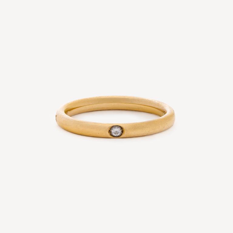Bague en or jaune ornée d’un diamant blanc taille brillant.