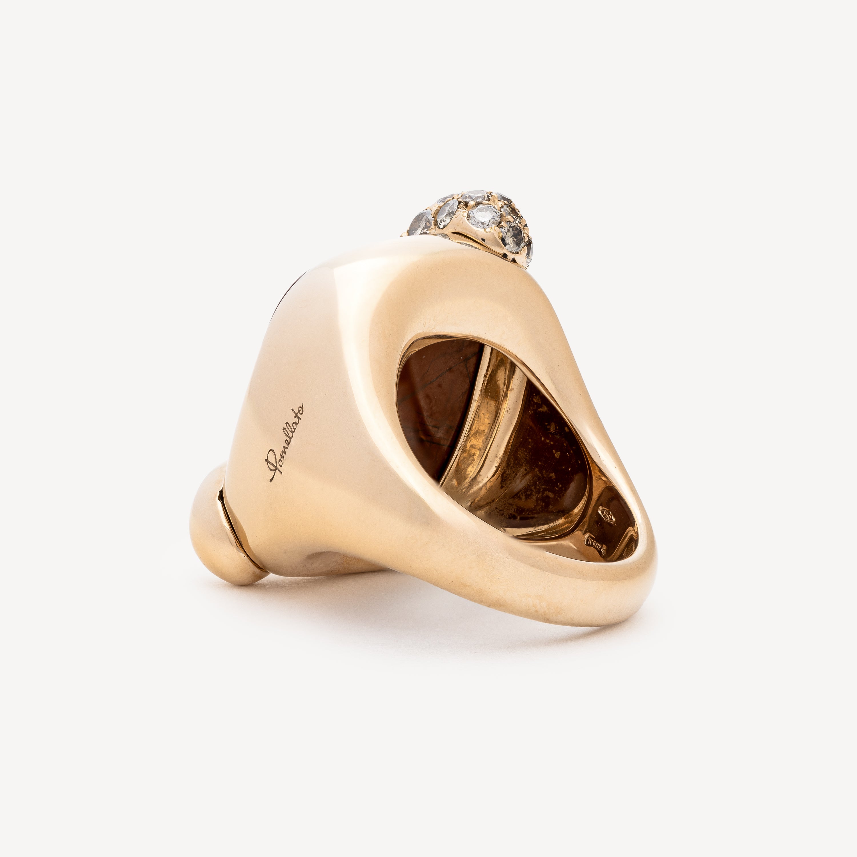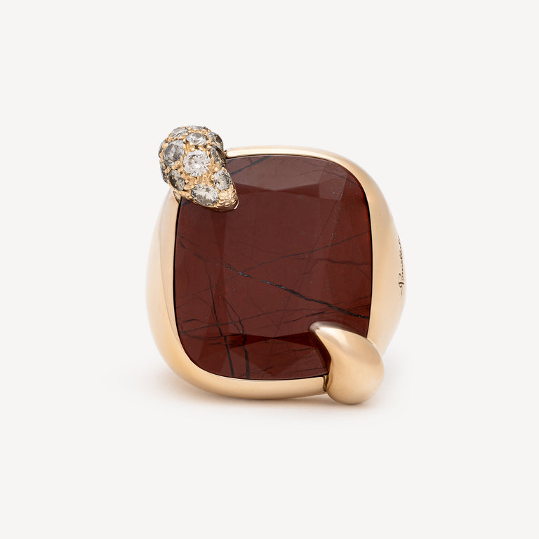 Bague Medium en or jaune ornée d'une jaspe centrale et d'une griffe pavée de diamants blancs.