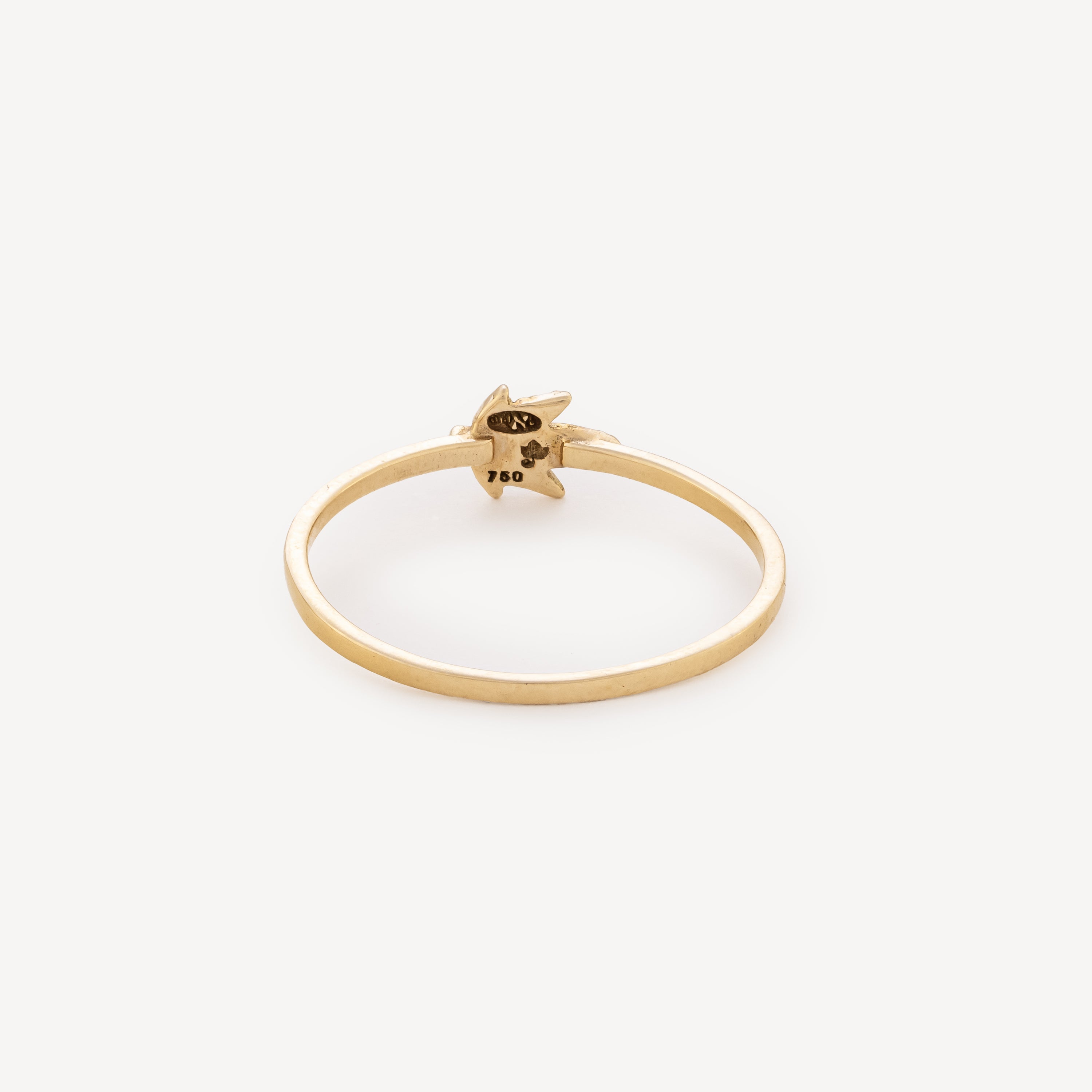 Bague fine en or jaune avec feuille en diamants.