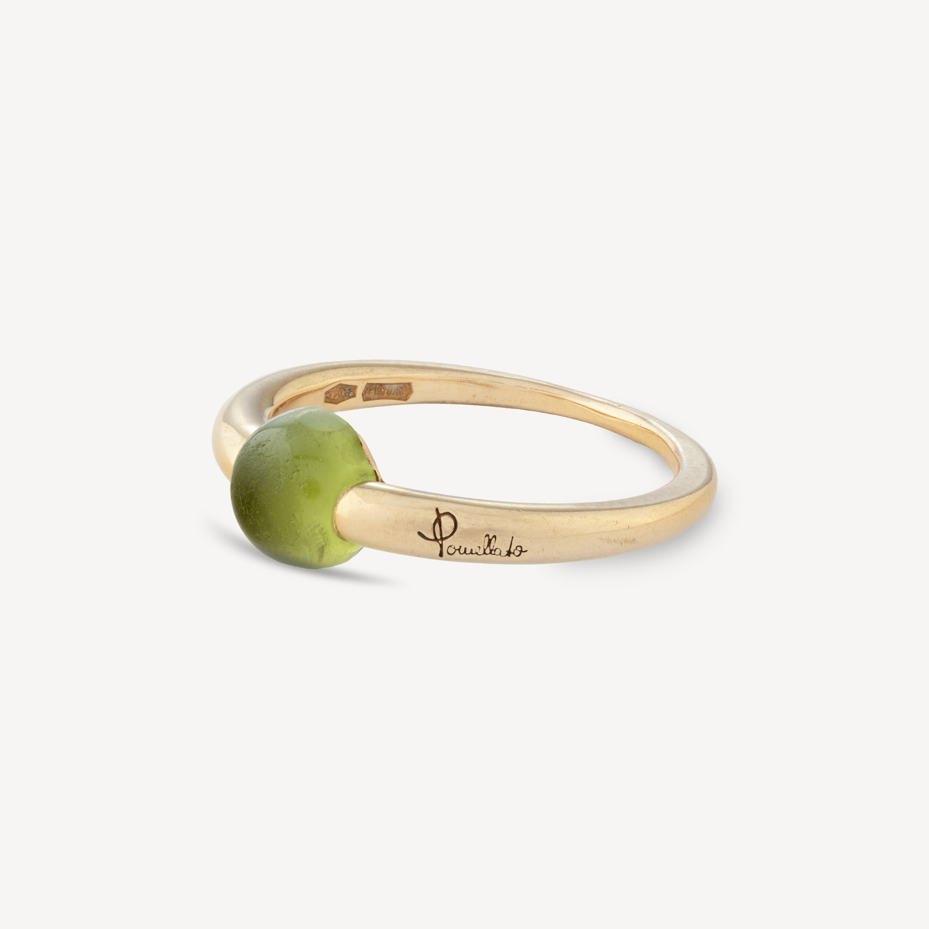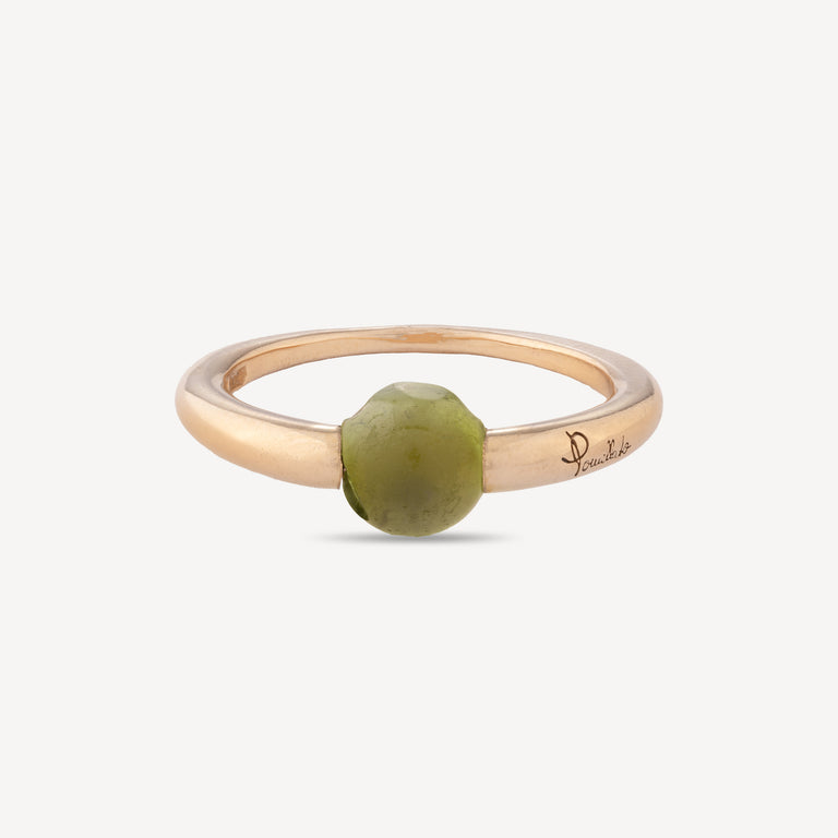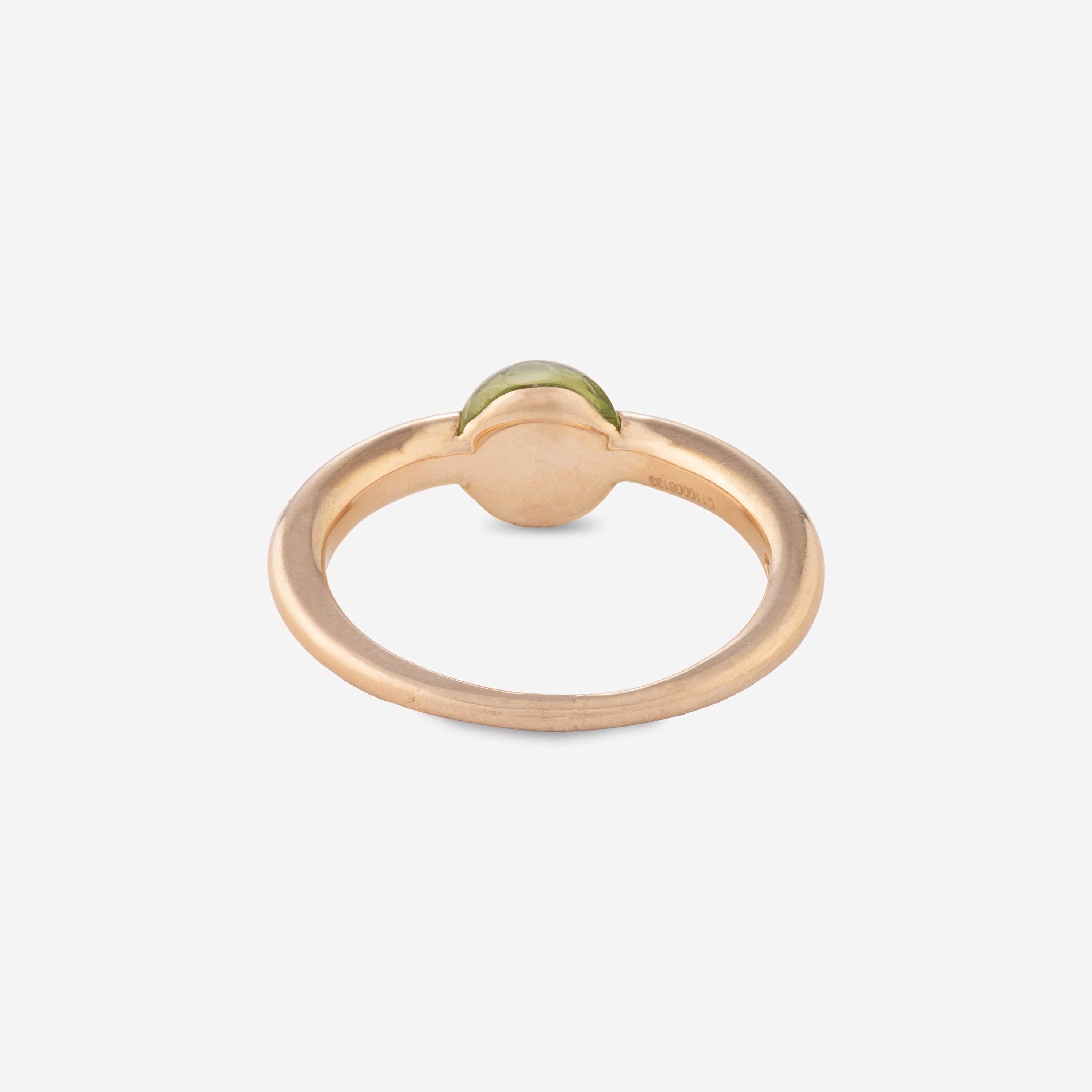 Bague en or rose avec pierre centrale Peridot verte. Pierre légèrement abimée sur le côté.