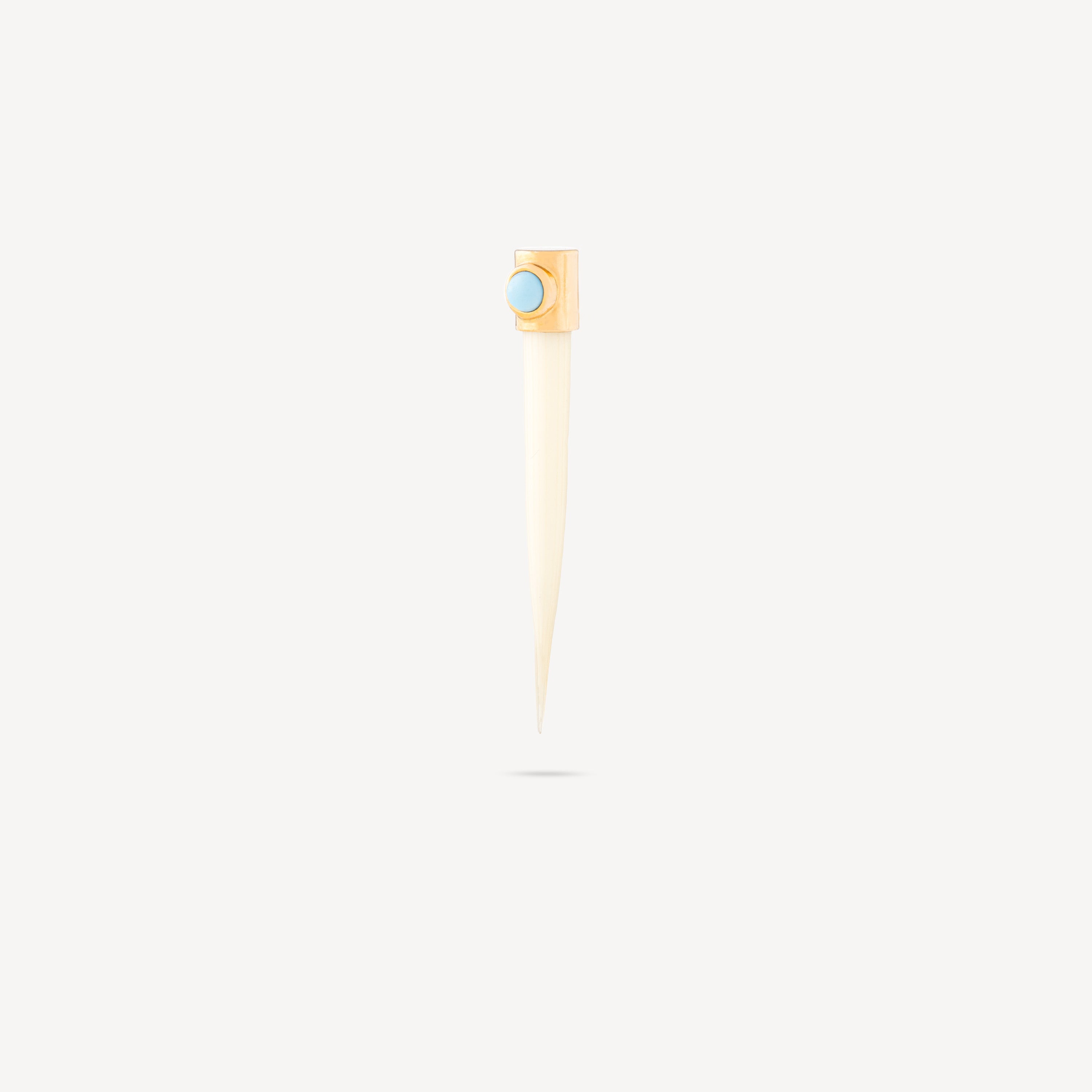 Boucle d’oreille pic en or et ornée d’une turquoise.