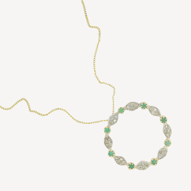 - Matériaux : Or Jaune, Diamant blanc, Argent, Emeraude