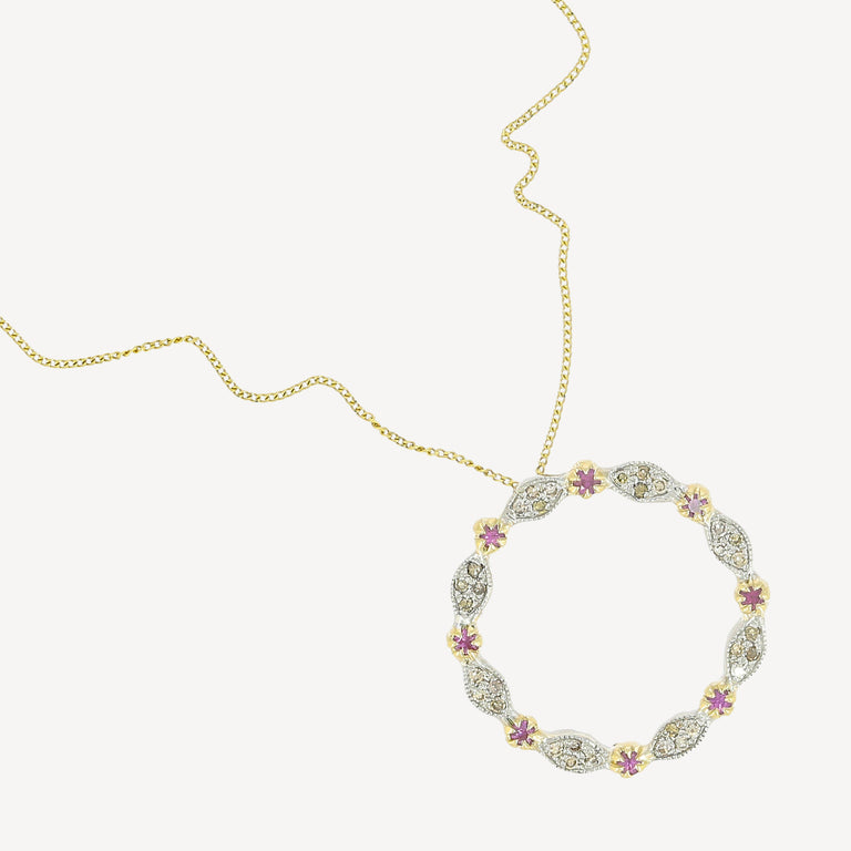- Matériaux : Or Jaune, Diamant blanc, Argent, Saphir rose