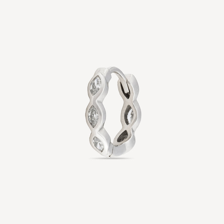 Piercing Créole 9.5mm Or Blanc Diamants Marquise 3x2mm