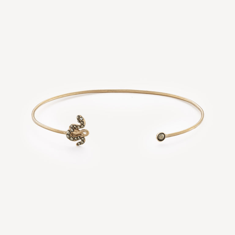 Bracelet jonc serpent en or jaune avec diamants bruts.