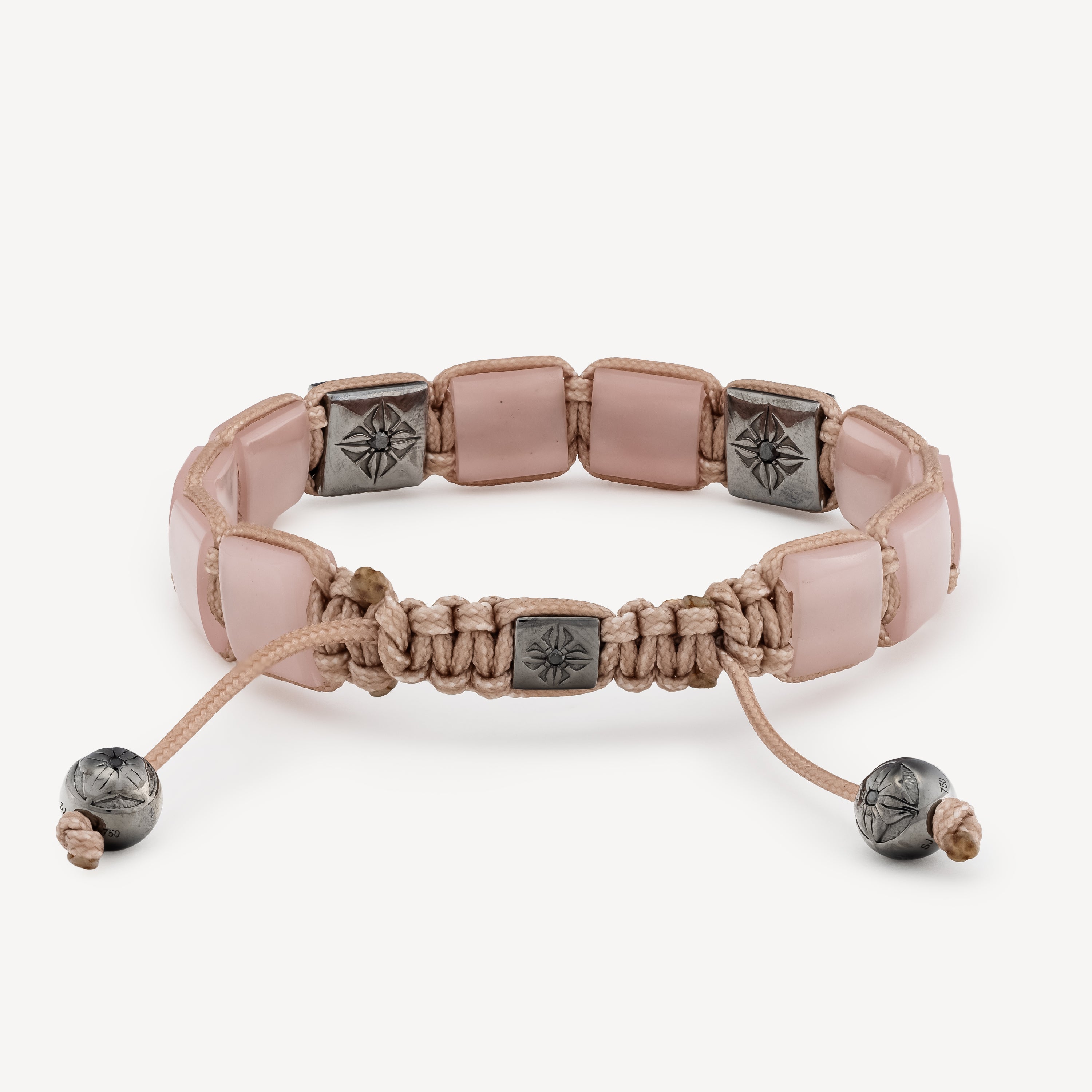 Bracelet couleur rose pêche avec diamants noirs.