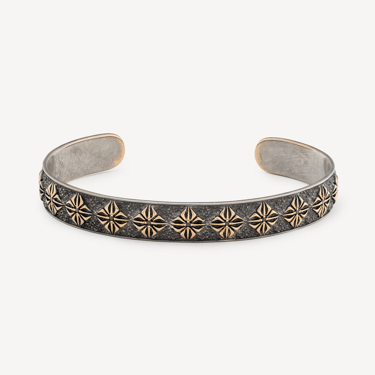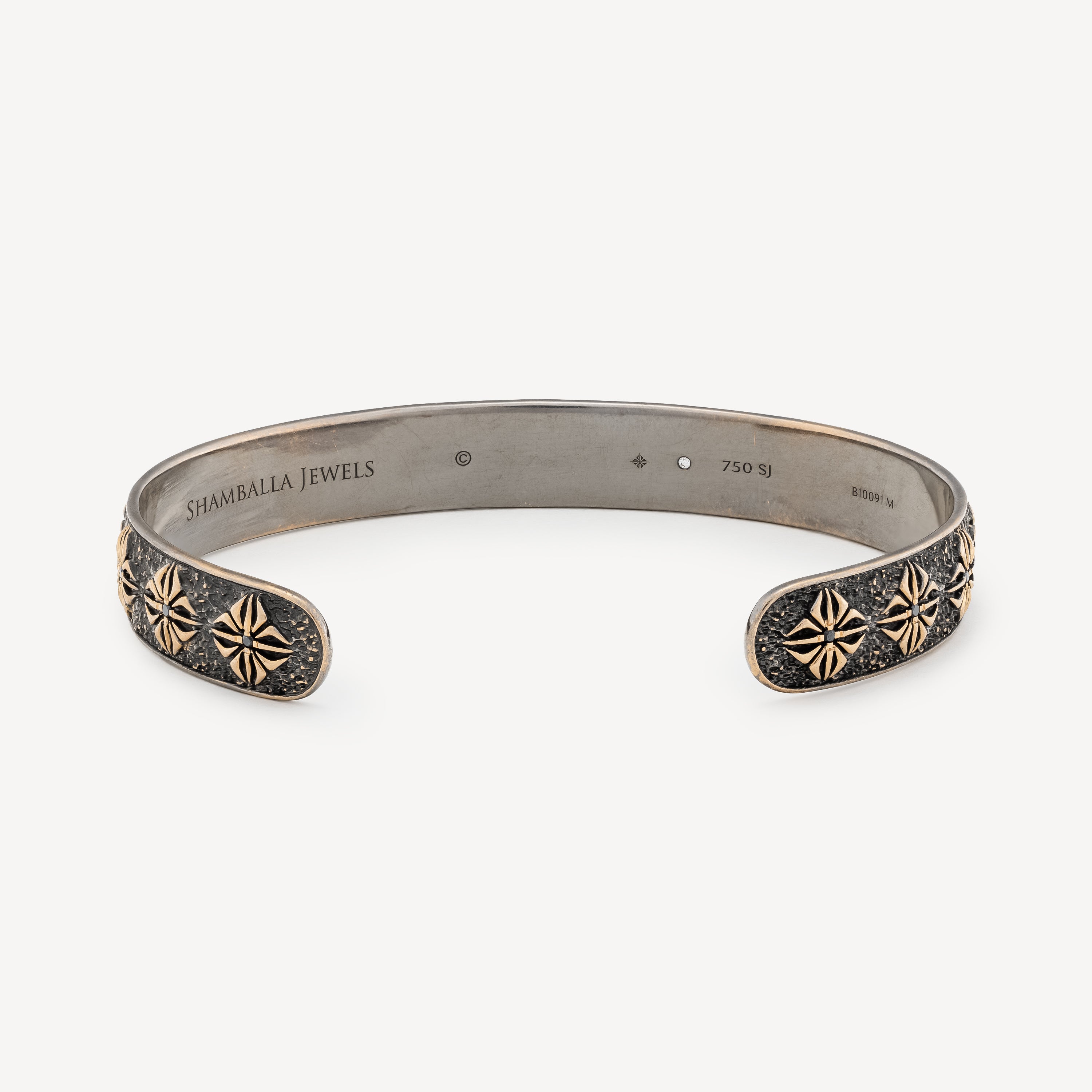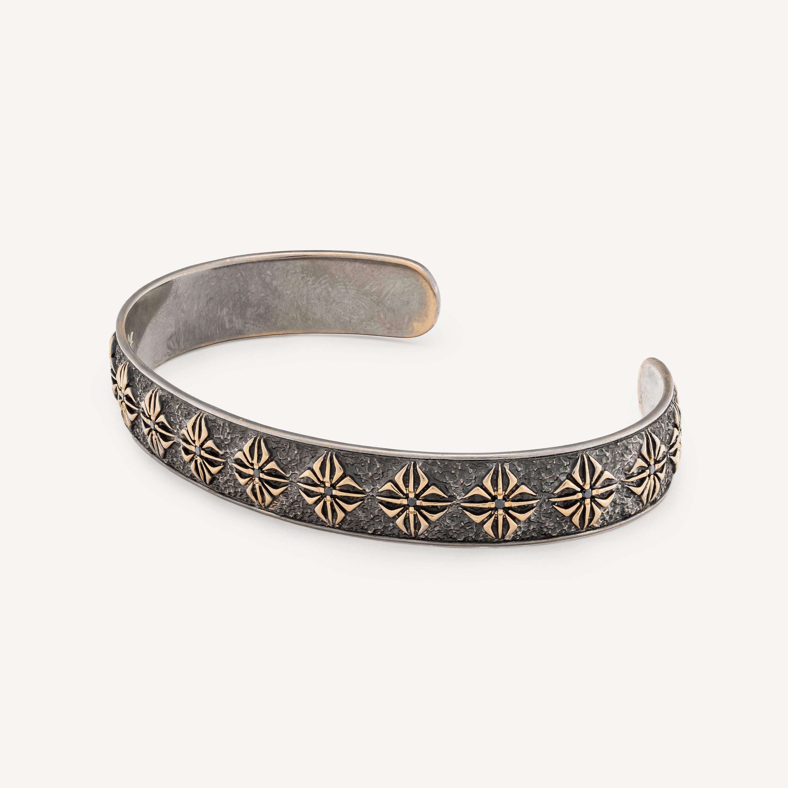 Bracelet jonc en or blanc et jaune avec diamants noirs.