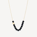 Collier en or rose avec perles obsidiennes noires et perle dorée.