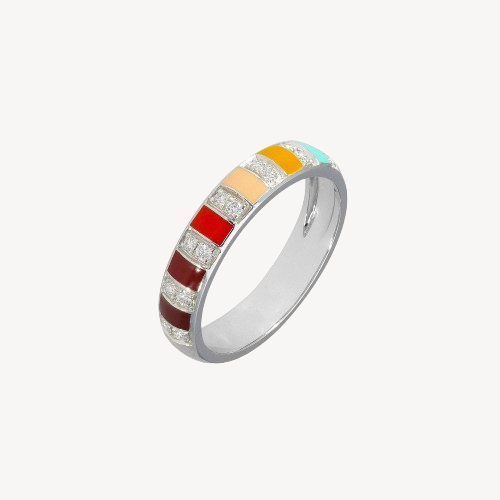 Bague Billie Email Multicolor et Diamants Or Blanc