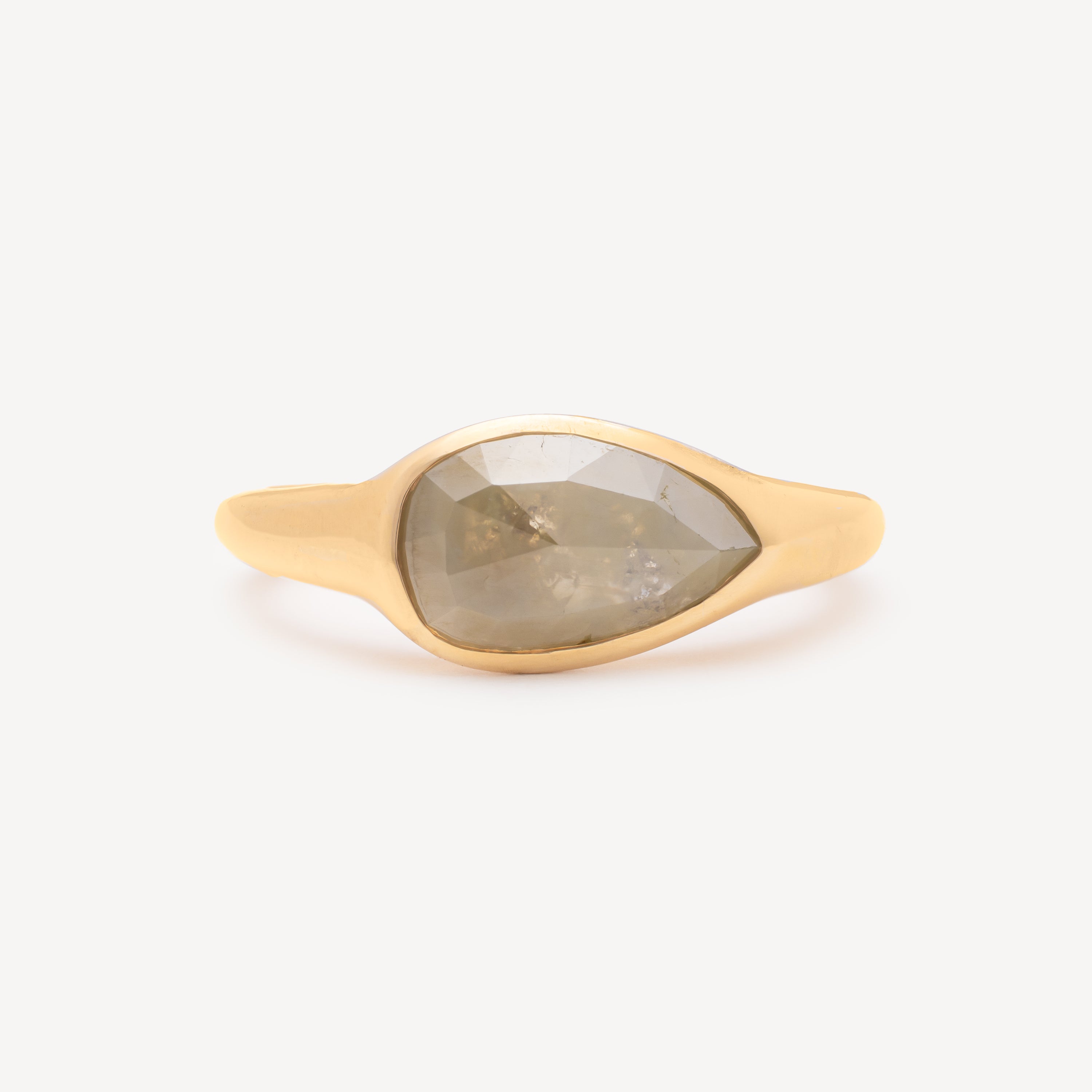 Bague en or jaune 18 carats, magnifiée par un diamant rose taille poire, une pièce rare qui allie audace et sophistication