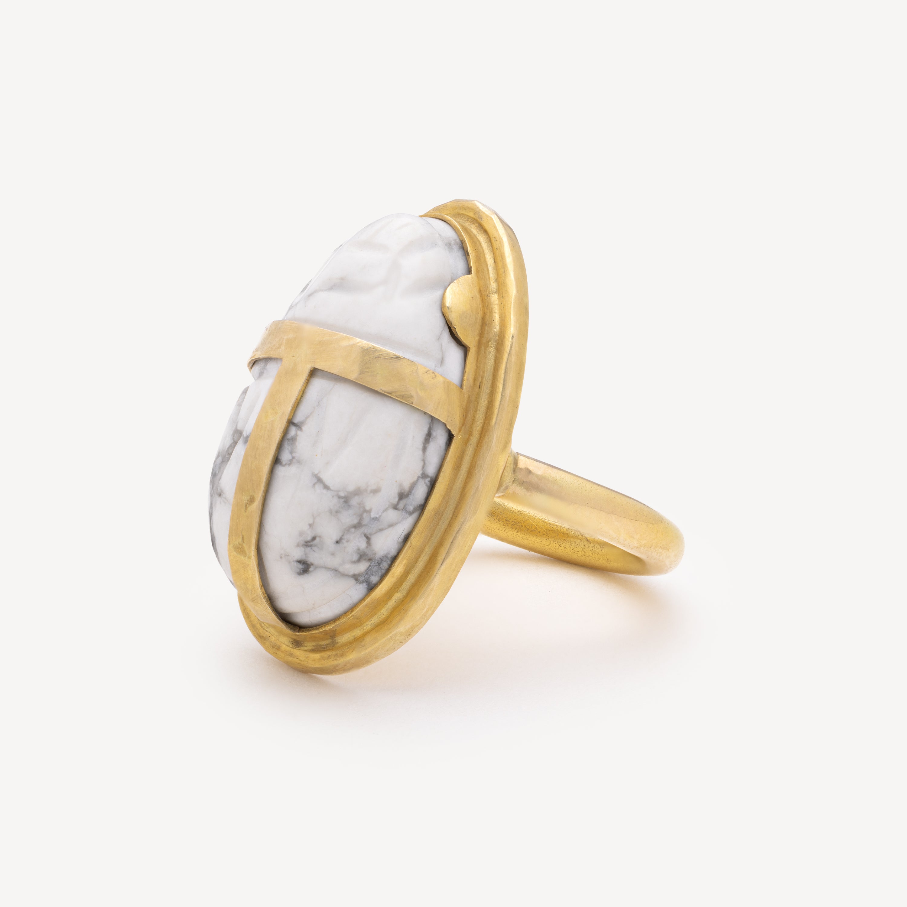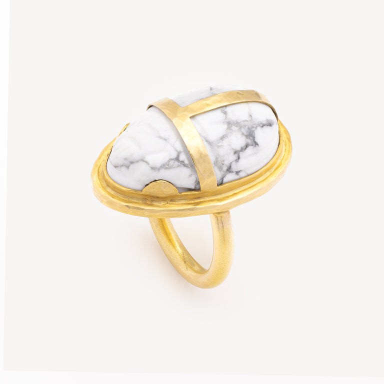 Bague Scarabee Howlite Or Jaune