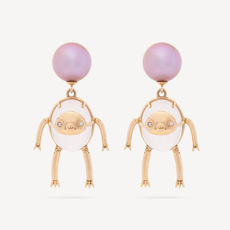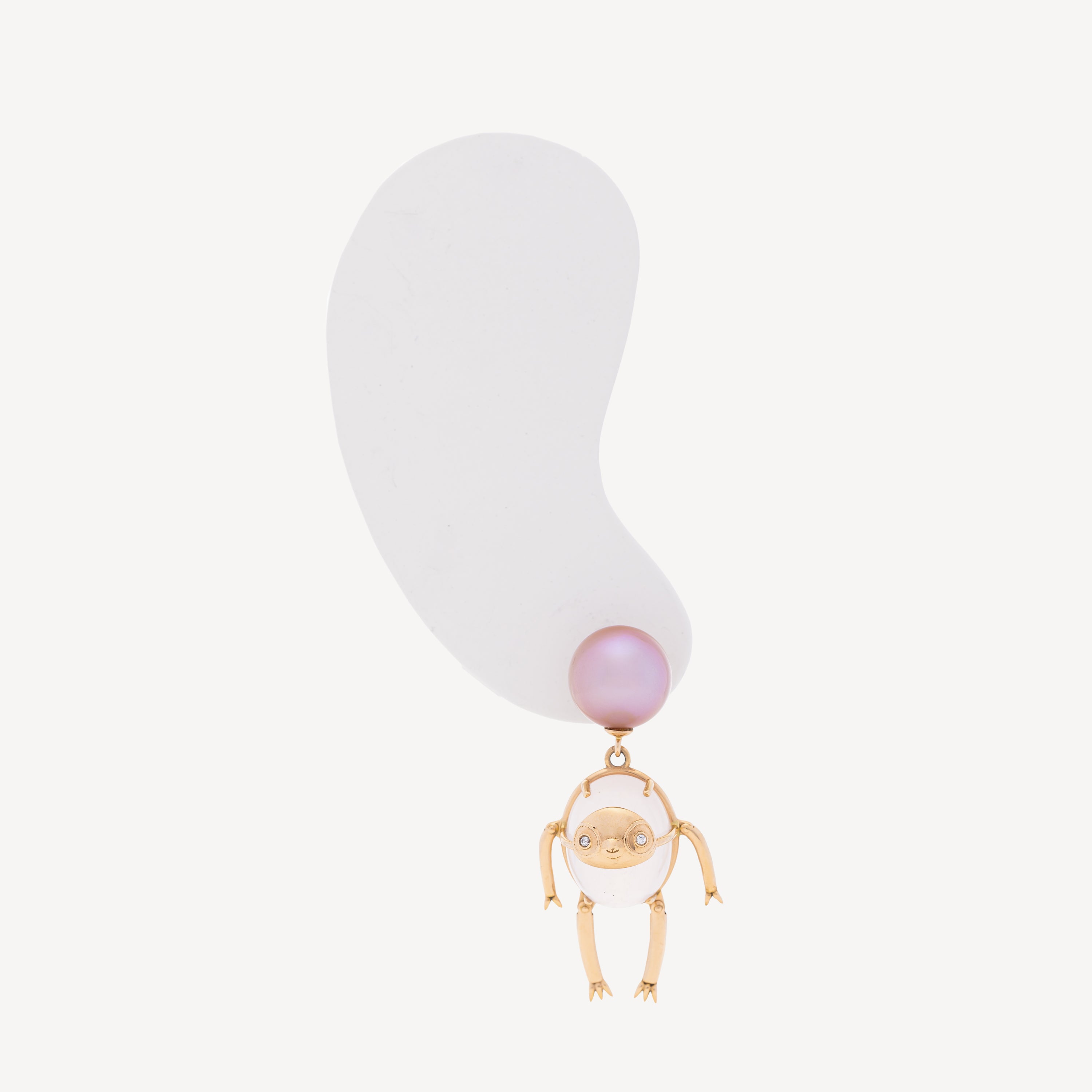 Cette paire de boucles d'oreilles représente un adorable paresseux sculpté dans de l'or jaune avec des yeux sertis de diamants pour une touche d'éclat subtile.