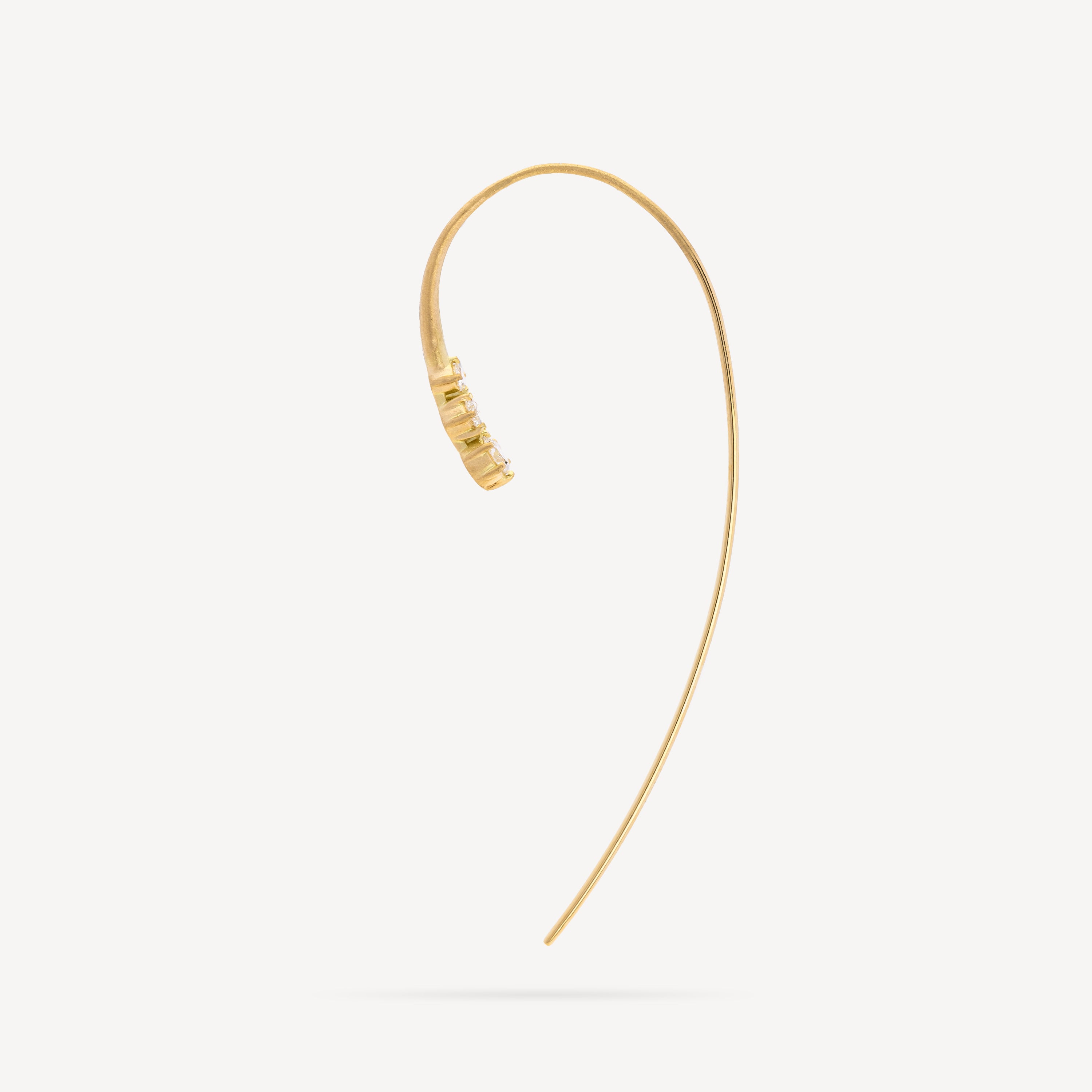 Découvrez notre boucle d'oreille Ara Three Stone, en or 18 carats avec trois diamants ronds brillants de 0,40ct. Son style filiforme et minimaliste en fait un ajout parfait pour votre stacking d'oreilles quotidien ou à porter seule.