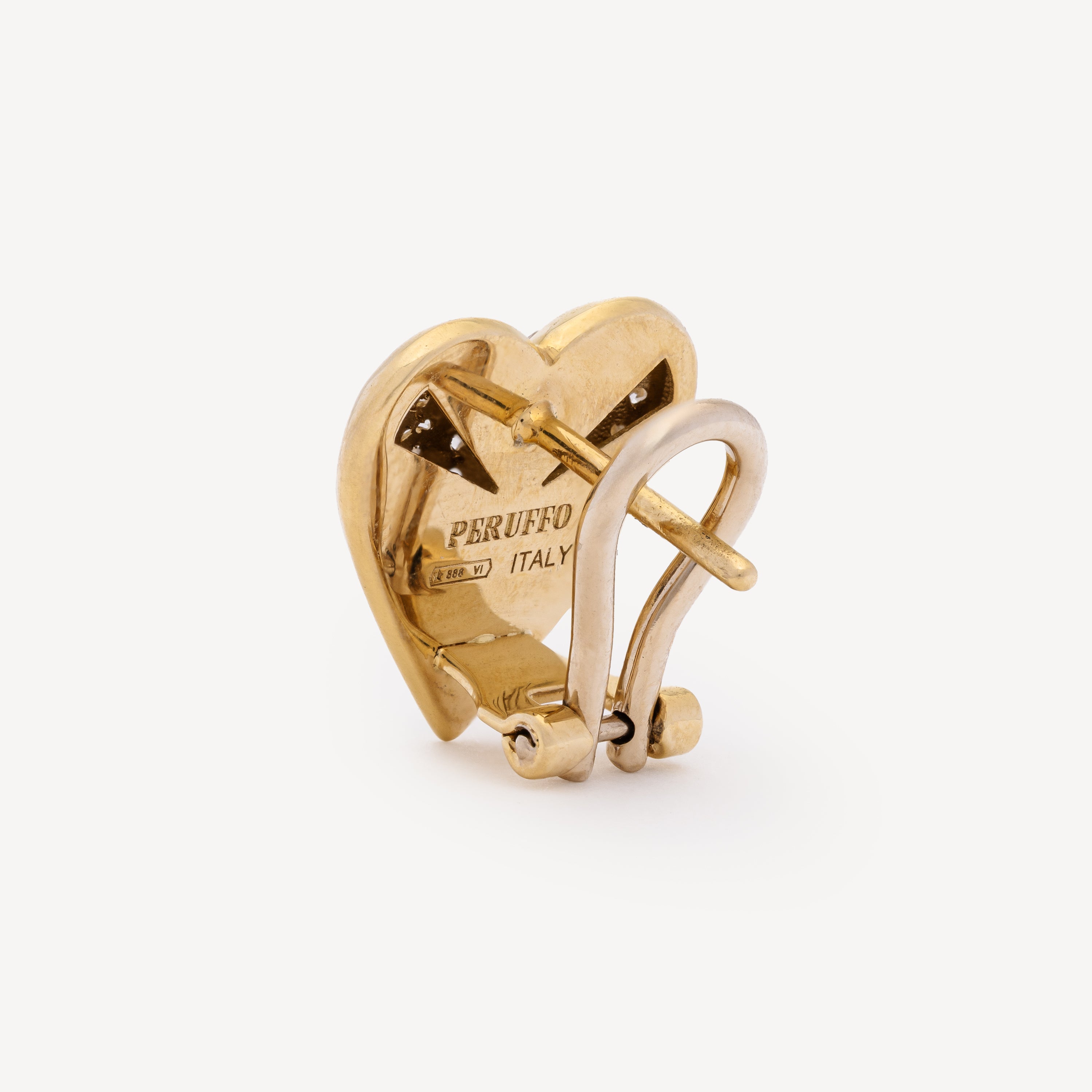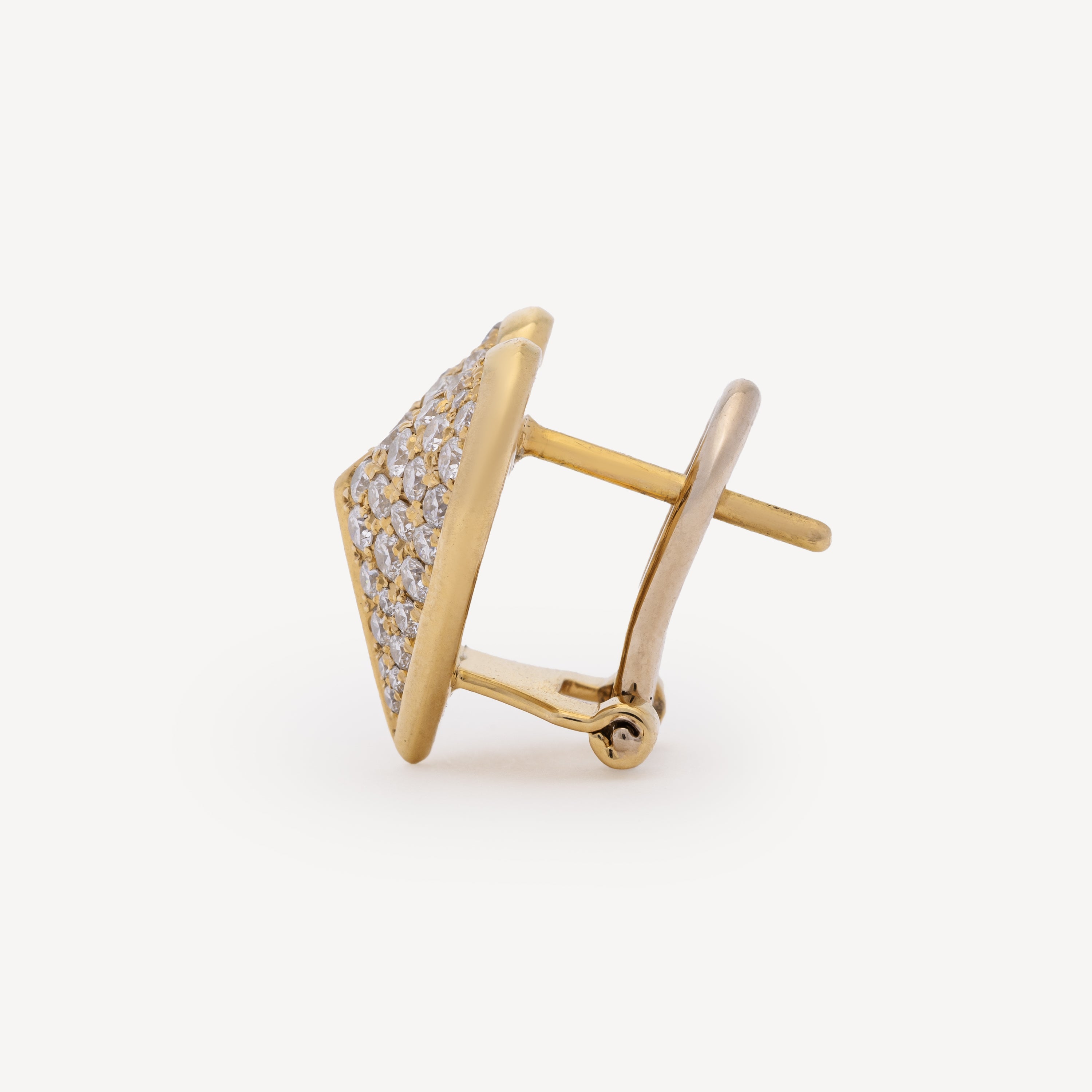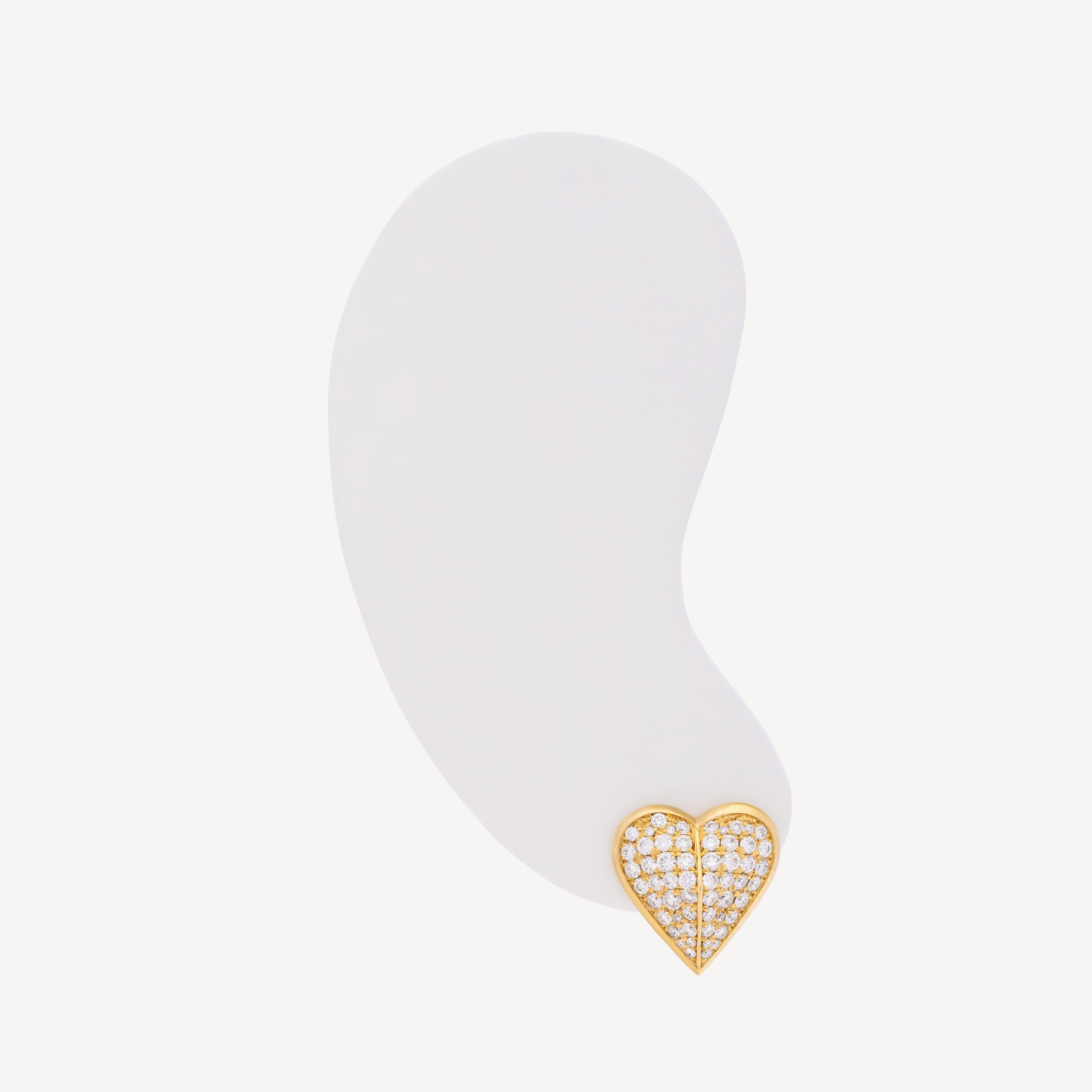Boucle d'oreille en forme de cœur géométrique en or jaune pavée de diamants blancs sur l'ensemble de la surface.
