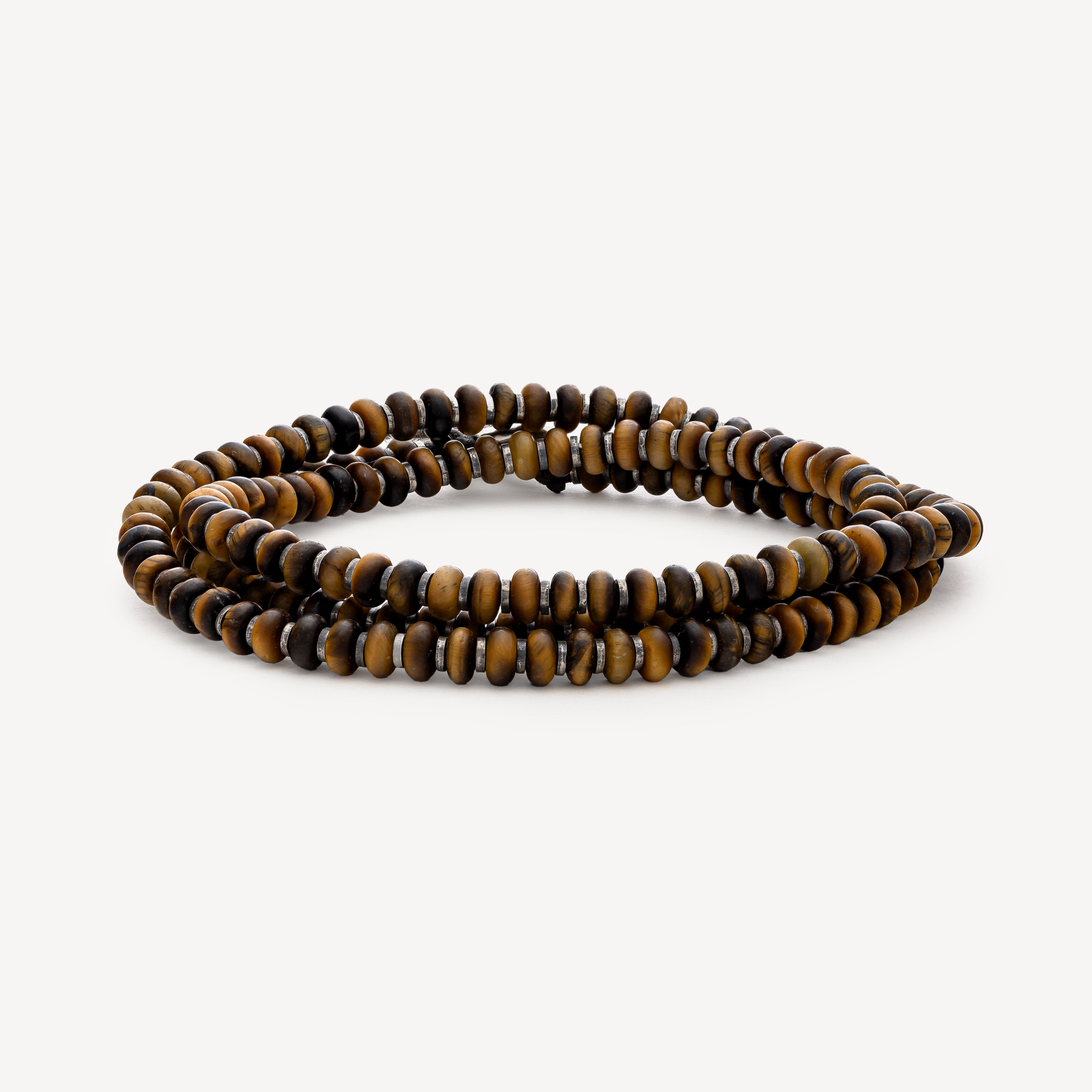 Bracelet triple tour de perles Tiger Eye montées sur un cordon avec fermoir en argent.