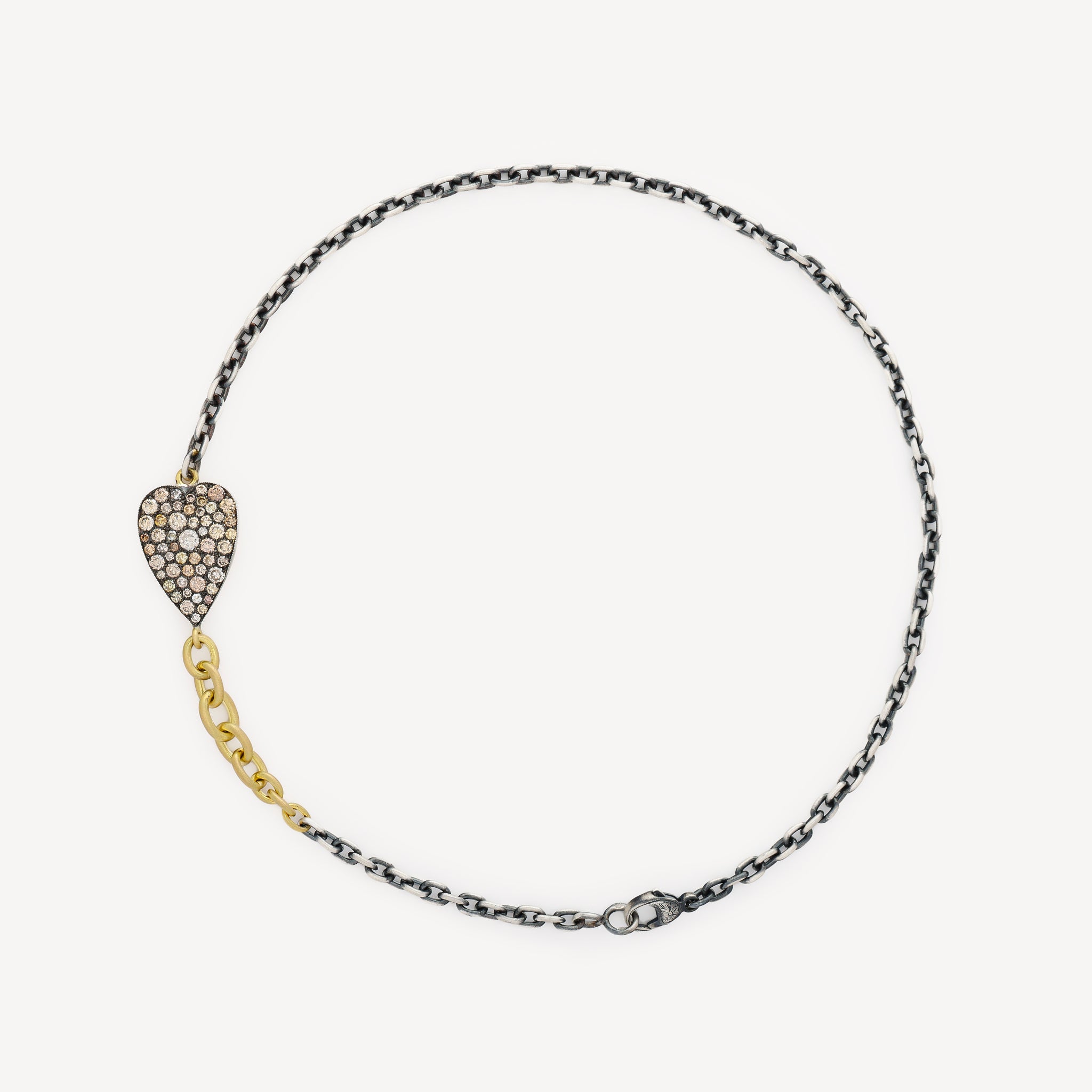 Ce bracelet en or jaune et argent est doté d'un cœur orné de diamants champagne.