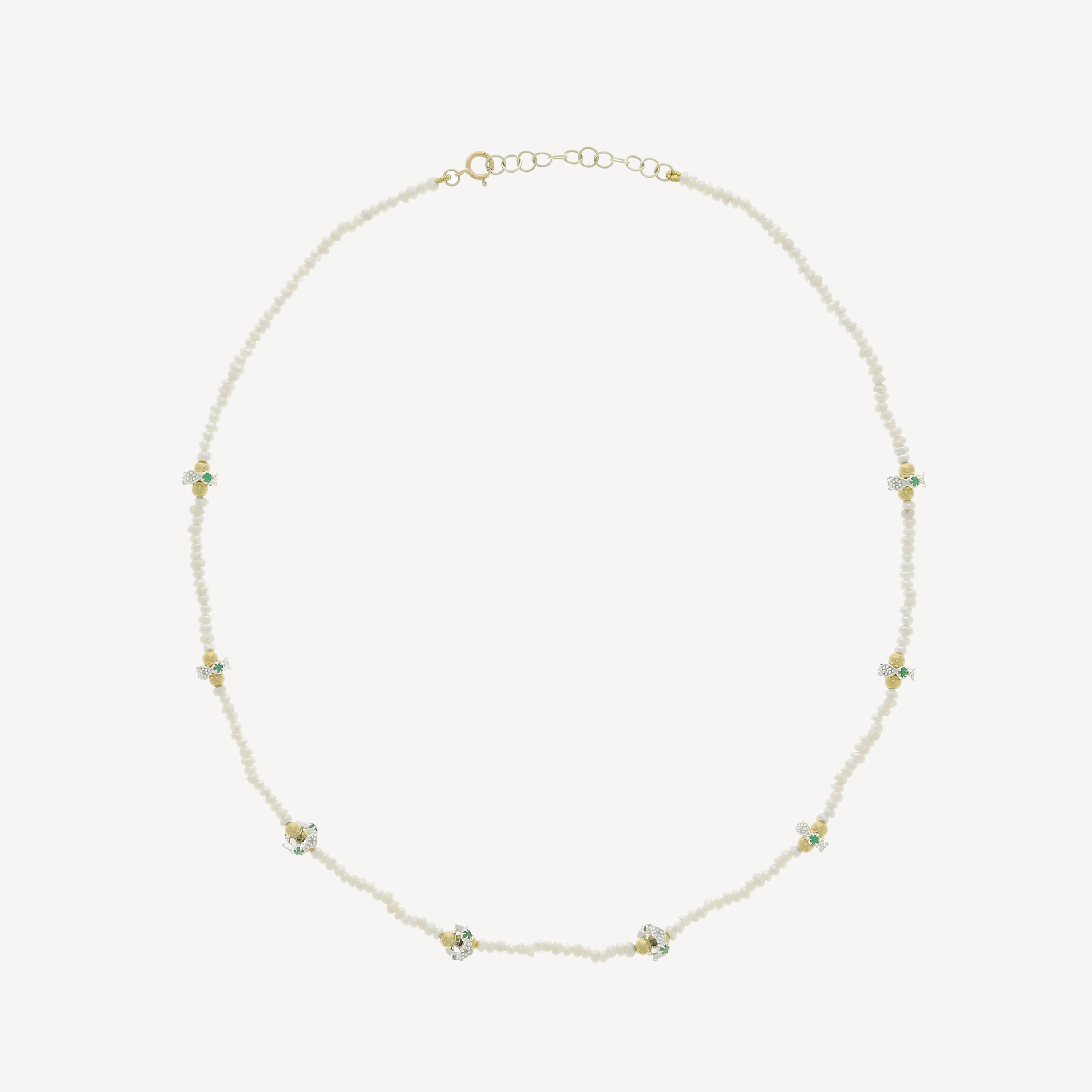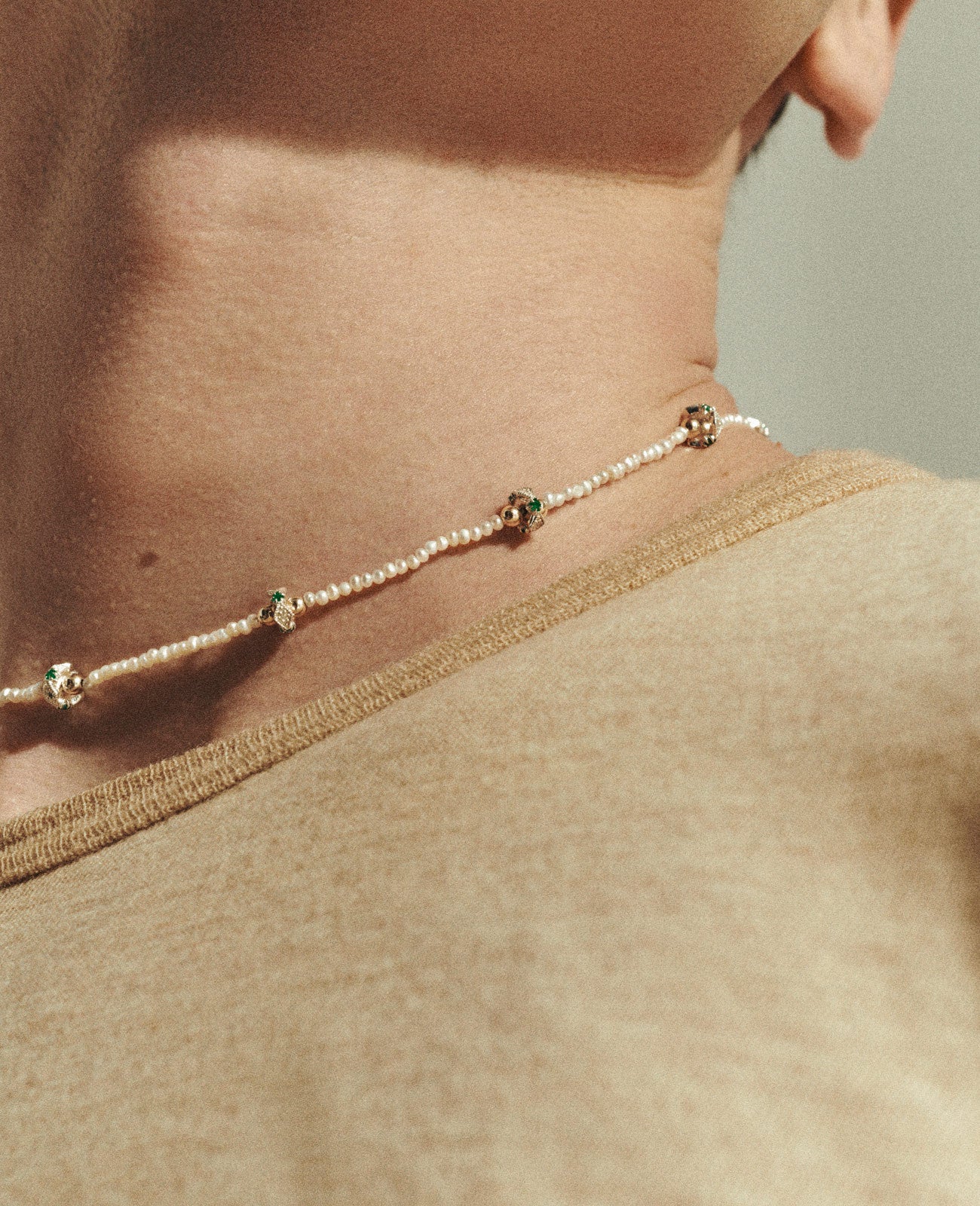 - Matériaux : Or Jaune, Diamant blanc, Argent, Perle, Emeraude