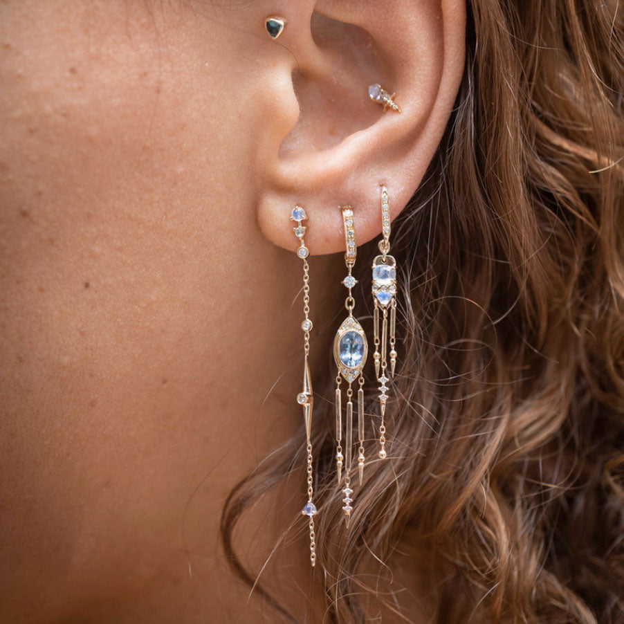 Boucle d'oreille Moonstones and Diamonds Long Dangling