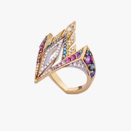 • Matériaux : Or Jaune, Diamant blanc, Saphir multicolore, Améthyste