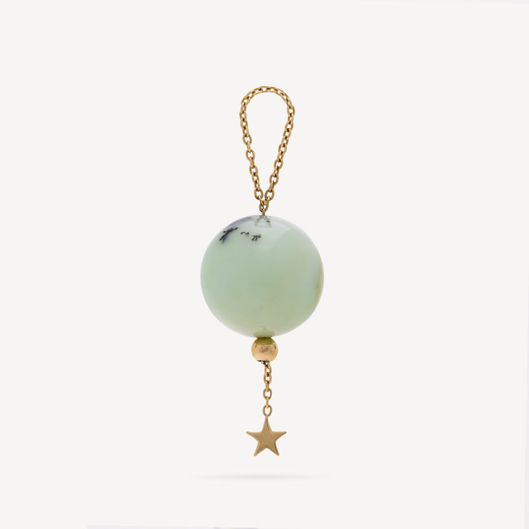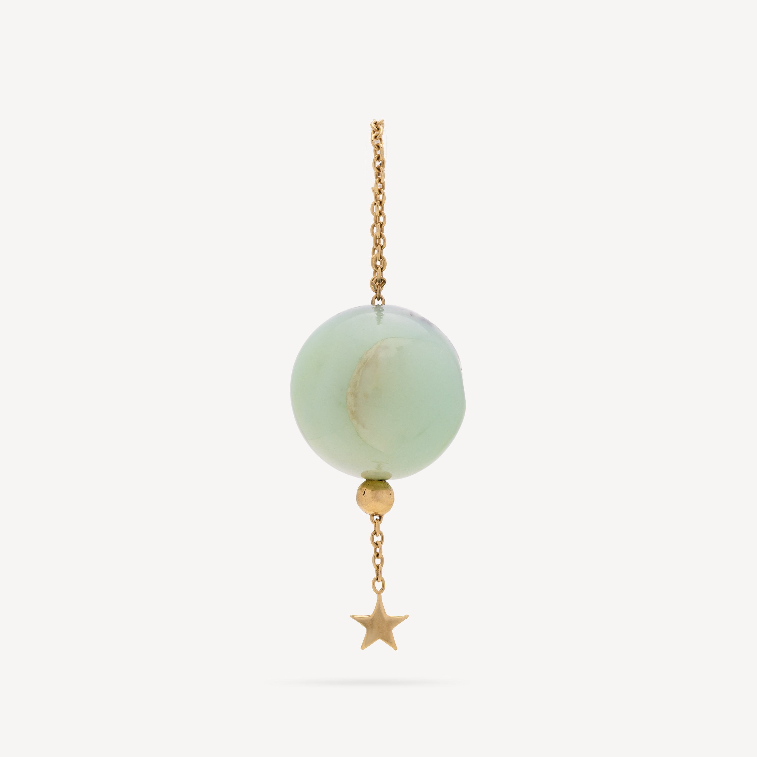 Pendentif rond en agathe verte avec étoile pendante. Bélière chaïne en or jaune.