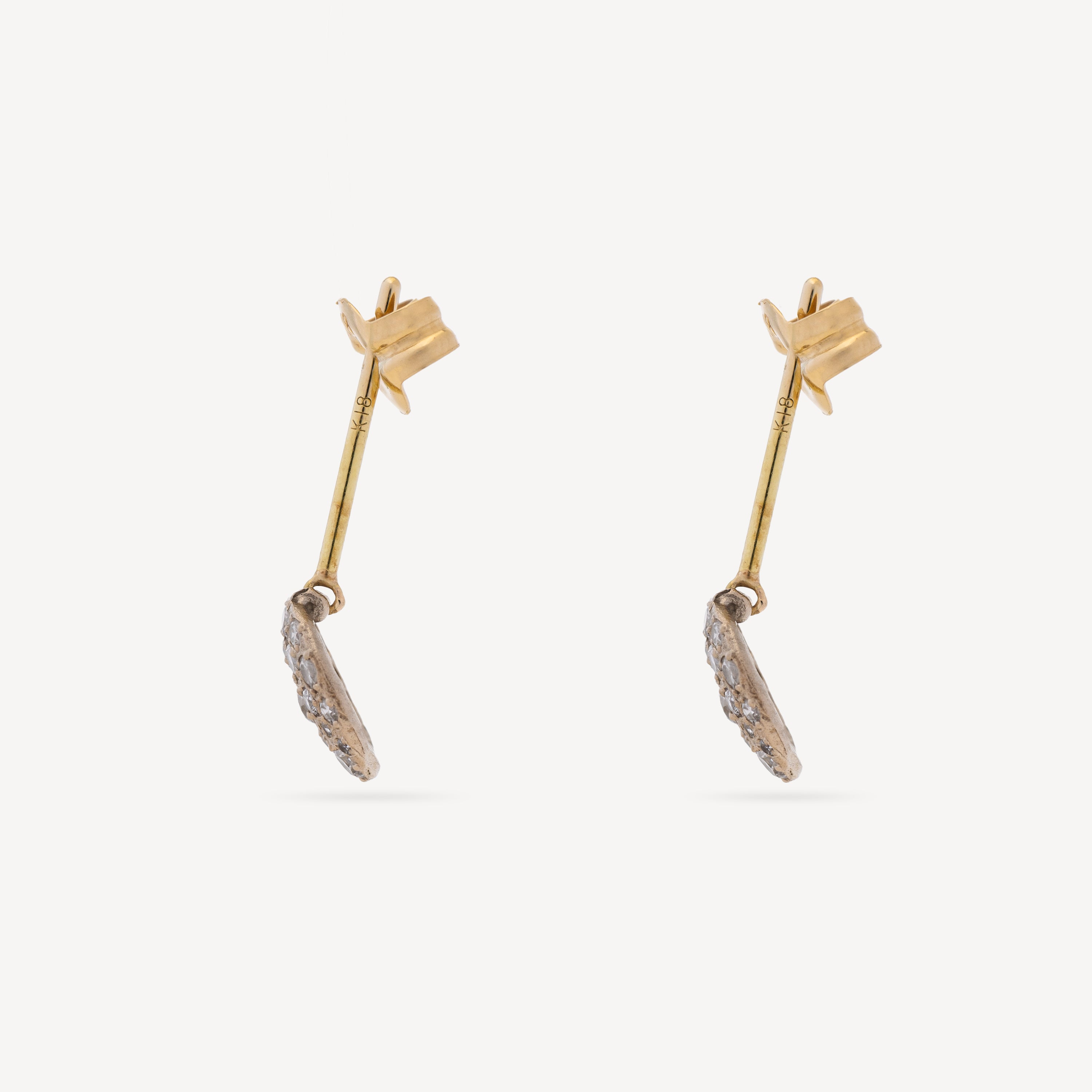 Boucles d’oreille en or jaune avec petits ronds libres pavés de diamants blancs.