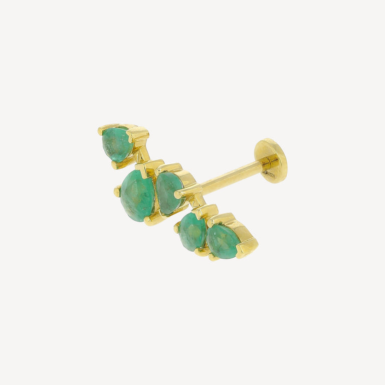 Piercing Puce Cinq Poires Espacées Emeraudes Or Jaune