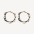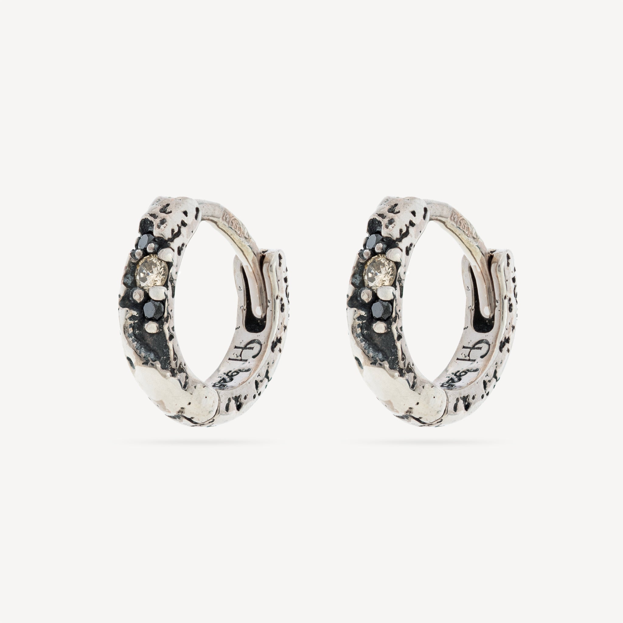 Ces créoles Carina Hardy en argent recyclé révèlent une texture minérale et un sillon où scintillent des diamants noirs et bruns sélectionnés. Chaque bijou est dessiné et façonné à la main à Bali, puis serti à Bangkok, pour une pièce rare alliant savoir-faire artisanal et matériaux d’exception. Le diamant renforce la clarté intérieure et magnifie l’énergie personnelle.