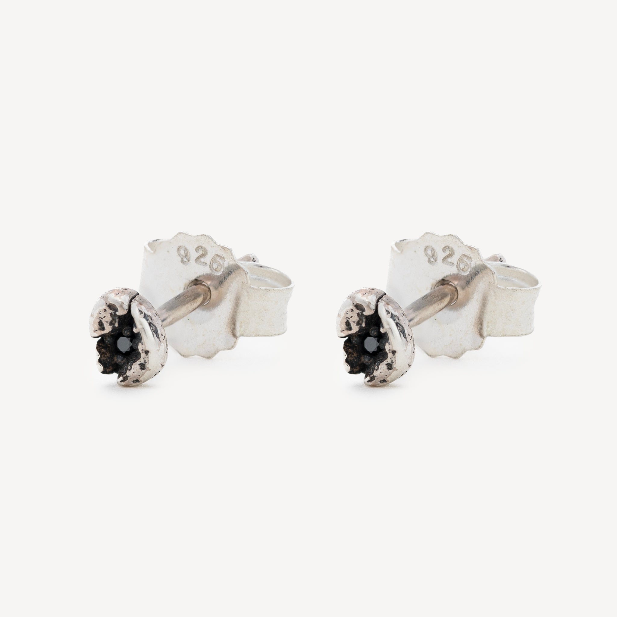 Sculptées dans l’argent, ces puces d’oreilles signées Carina Hardy évoquent des éclats de roche volcanique. Leurs surfaces rugueuses et cratérisées dévoilent des crevasses délicatement serties de diamants noirs et bruns. Symbole de pureté et de force intérieure, le diamant amplifie l’énergie et clarifie l’esprit.