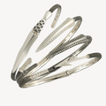 Ce bracelet est exclusivement constitué d’or blanc. Son extrémité est pavée de diamants blancs. Cette flèche qui symbolise le sens de la vie est inspirée de cultures aujourd’hui disparues. L’alliance entre la pureté de la pointe et la patine du manche confère au bijoux un contraste saisissant. Il existe également en or noir, jaune ou rose.