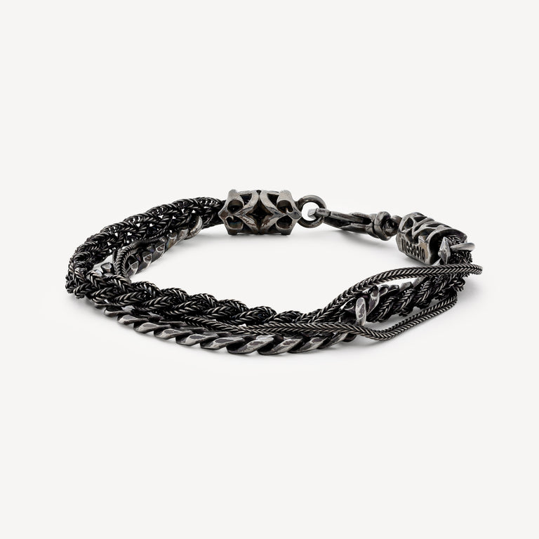 Bracelet en argent composé de quatre chaînes avec tressages différents.