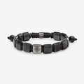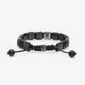 Bracelet monté sur un cordon gris foncé composé de 12 locks et 2 beads en céramique noire : 13 locks de saphir brun, 1 lock en or noir sertis de 2 diamants noirs, 1 lock en or noir serti d’un diamant noir, et 2 beads en céramique noire.