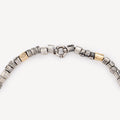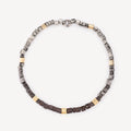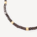 Collier composé de perles en argent oxydé et en or jaune. Peut également se porter en bracelet double tours.