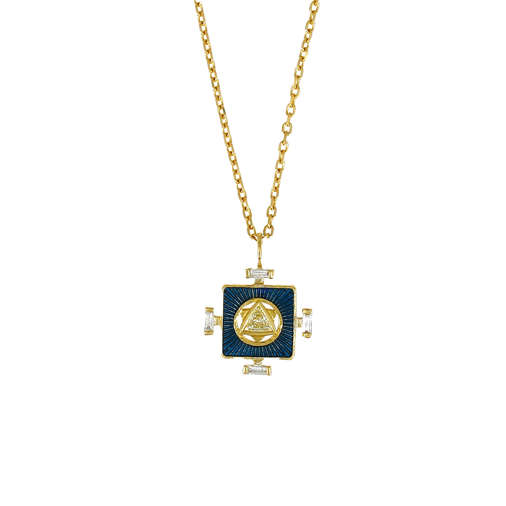 Collier Blue Yantra Third Eye Chakra and Trillion Diamond