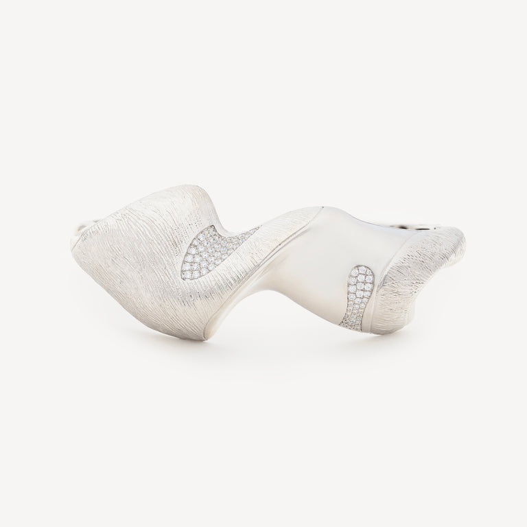 Le bracelet Arcadia en or blanc brossé, avec ses 15,5g et ses 0,36 carat de diamants, incarne l'élégance moderne et la sophistication intemporelle.