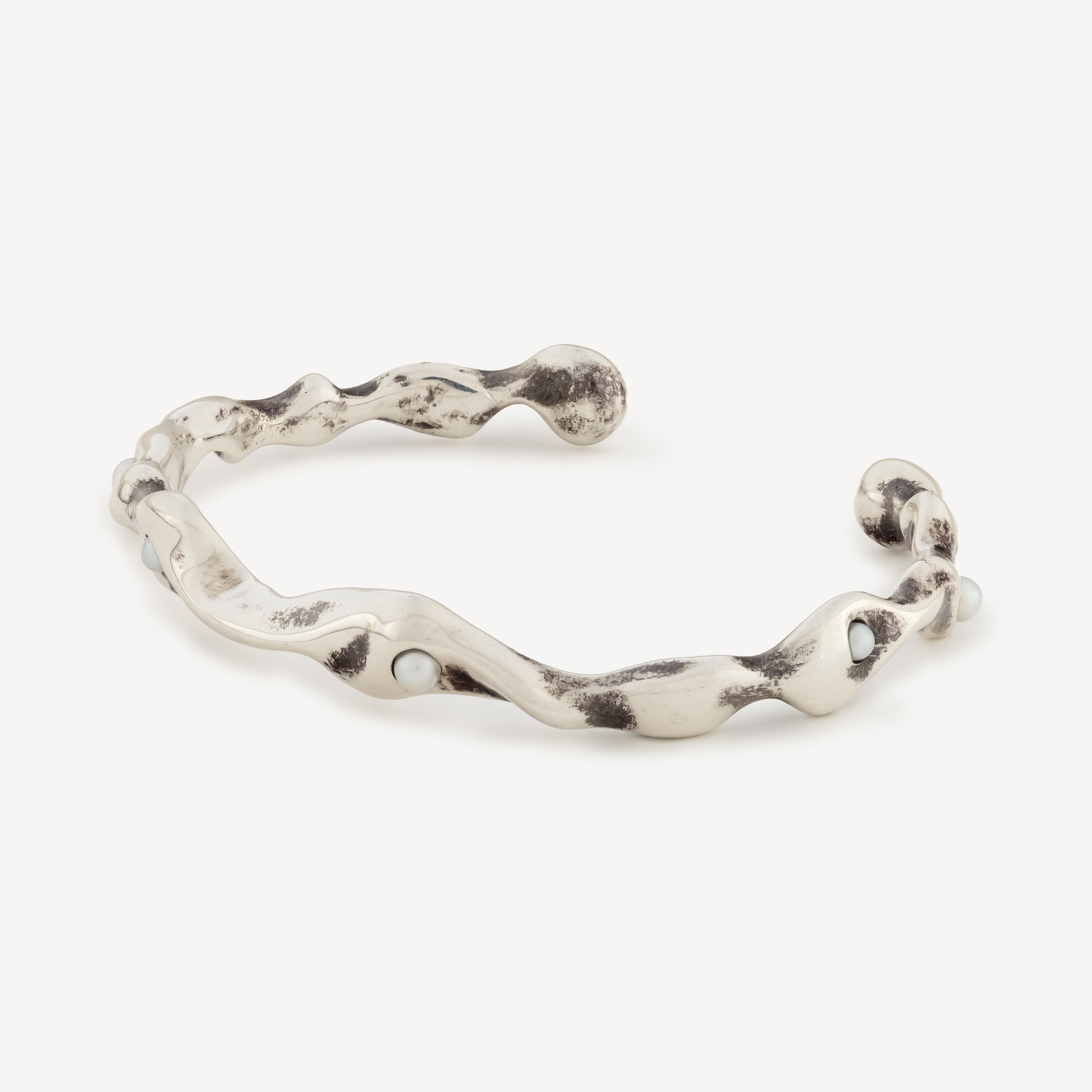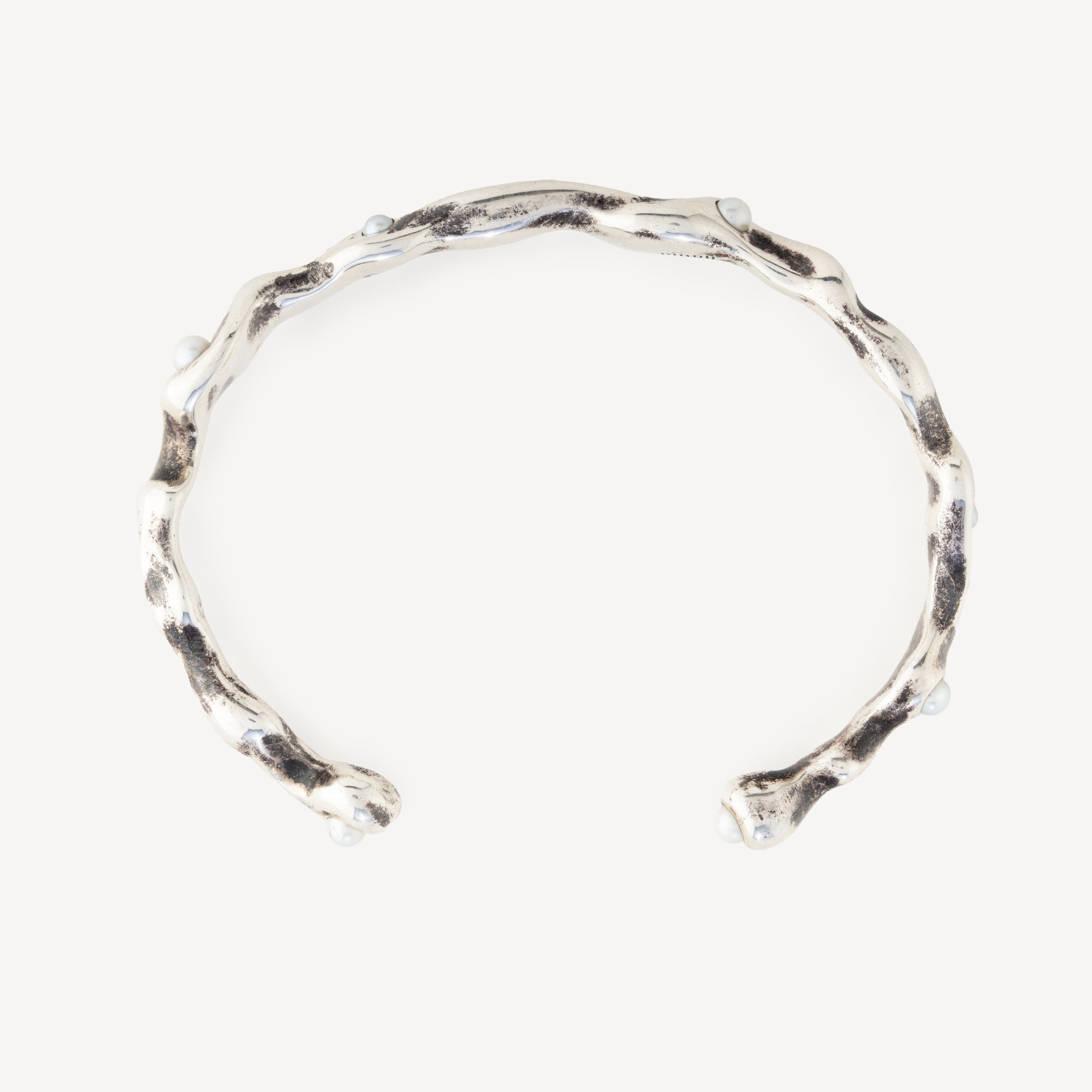 Bracelet Manchette Chaîne Perle Blanche Argent