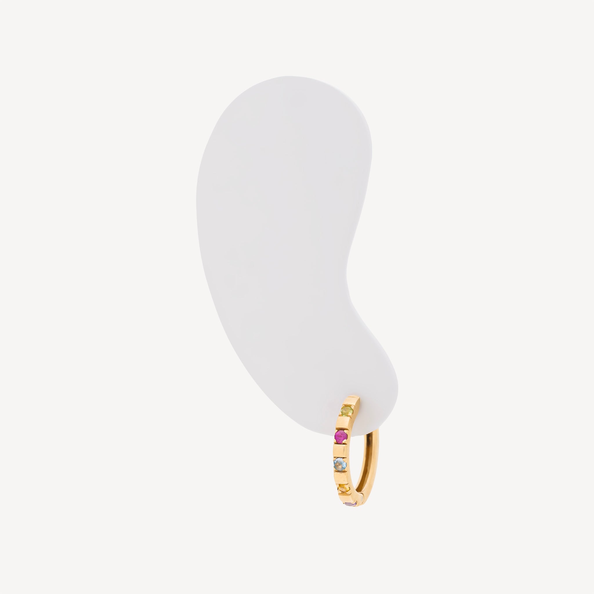 Cette créole Shiraz en or jaune 14 carats met en valeur des diamants multicolores d’une pureté remarquable. Les diamants multicolores allient l’éclat de la lumière à l’énergie des couleurs : ils stimulent la créativité, équilibrent les émotions et amplifient les vibrations positives en harmonisant le corps et l’esprit.
