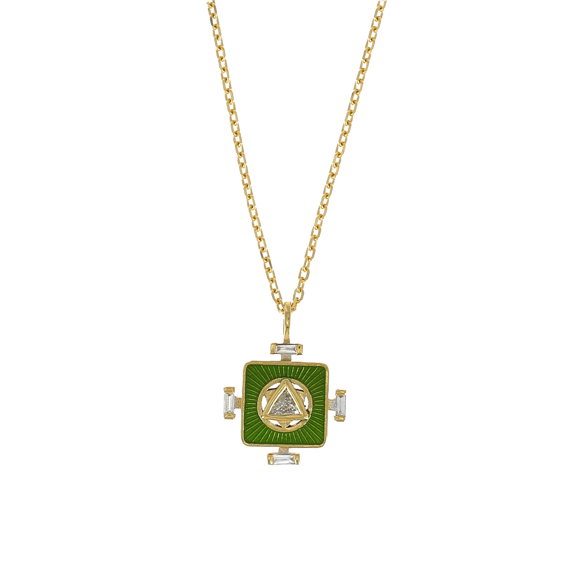 Collier Green Yantra Heart Chakra and Trillion Diamond