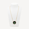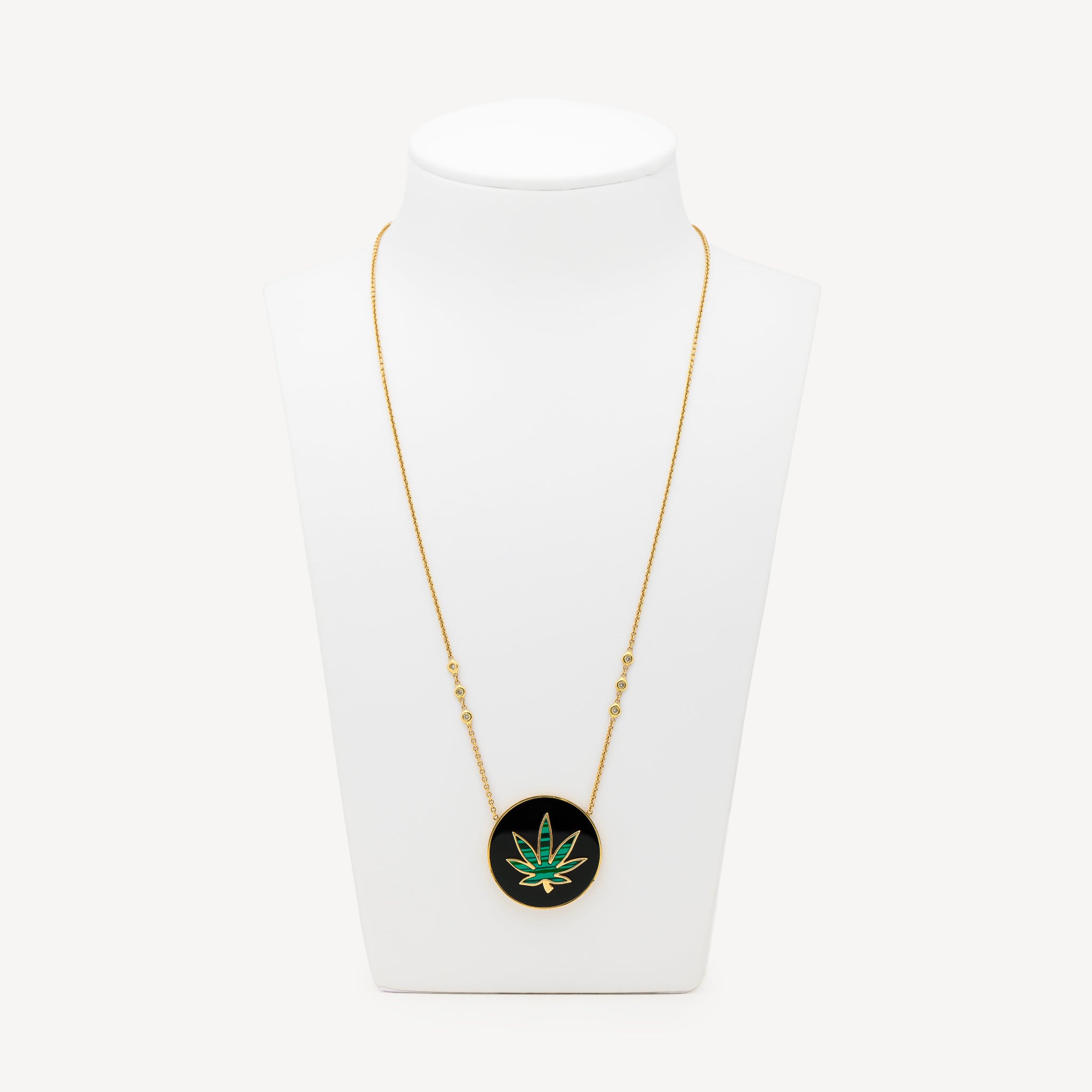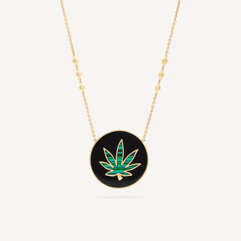 Découvrez le Collier Sweet Leaf, où la spiritualité rencontre le style. La malachite, pierre de transformation et de protection, apaise l'âme tout en purifiant les énergies négatives. Serti d'or, il allie l'esthétique bohème à la sophistication avec ses trois diamants blancs de chaque coté. Chaque pièce est unique, révélant les motifs naturels caractéristiques des pierres.