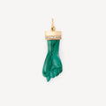 Jacquie Aiche propose le pendentif Figa Malachite délicat en or jaune, conjuguant tradition et modernité. Cette pièce emblématique arbore la symbolique protectrice de la main de figa, sublimée par l'association de la malachite et des diamants. La malachite, pierre de transformation et de protection, est reconnue pour absorber les énergies négatives et favoriser l'équilibre émotionnel. Associée aux diamants qui amplifient la clarté mentale et la force intérieure, ce charm devient un talisman puissant pour naviguer la vie avec sérénité et confiance.