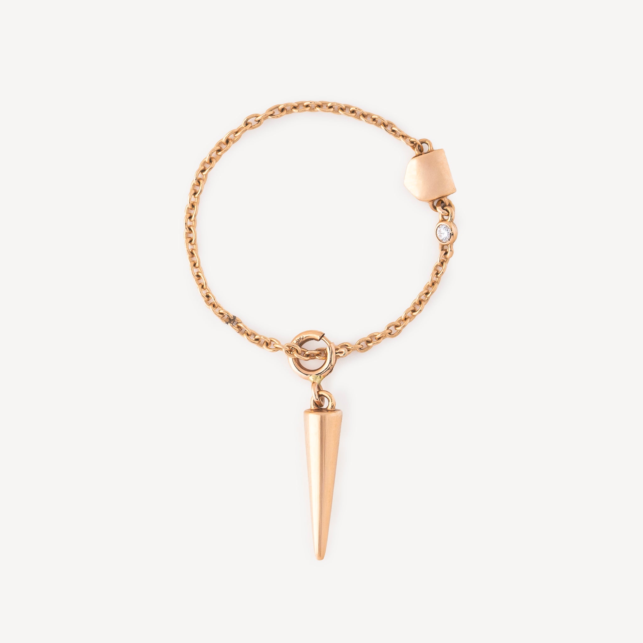 La bague chaîne Talisman By en or rose composée d'un blason, un diamant ainsi que d'un charm revolution crée une dynamique visuelle remarquable, le charm apportant une dimension modulable et personnalisable. Le diamant blanc diffuse la pureté et la clarté.