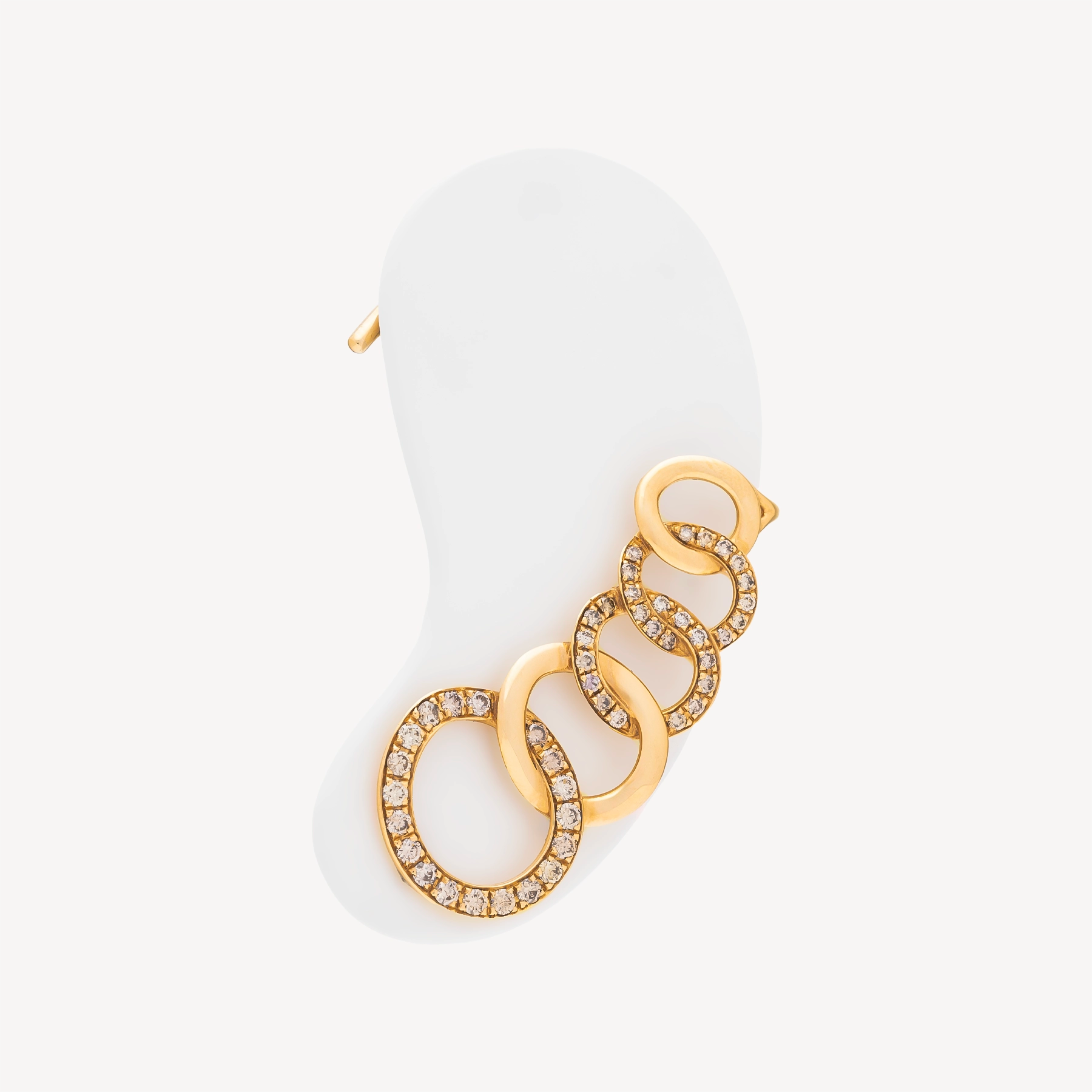 Icône de la ligne Brera, cette boucle d’oreille Pomellato en or rose révèle toute sa profondeur grâce à un pavage de diamants bruns aux nuances chaleureuses. Se porte sur l’oreille gauche.
