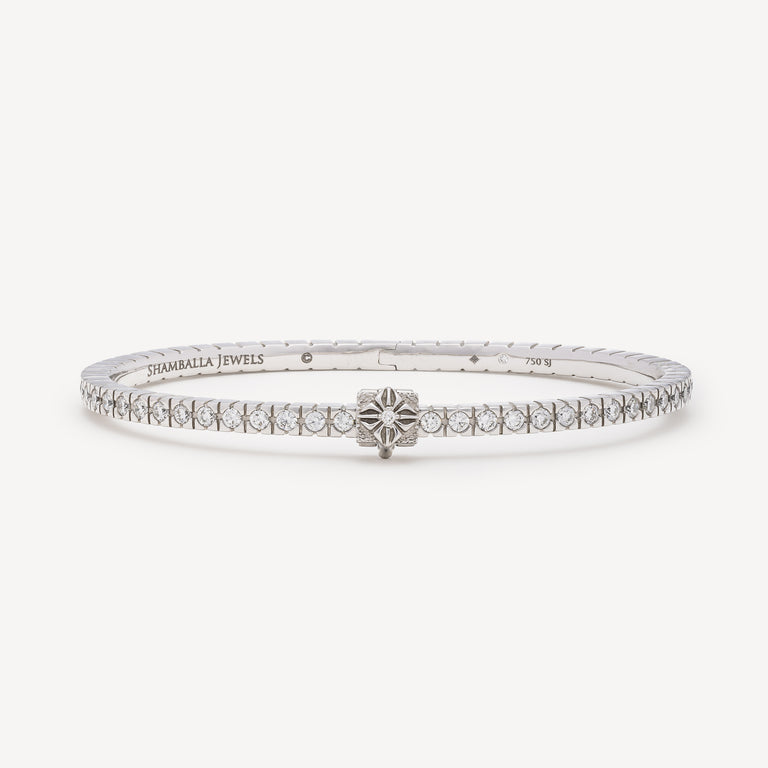 Bracelet fin en or blanc serti de diamants blancs.