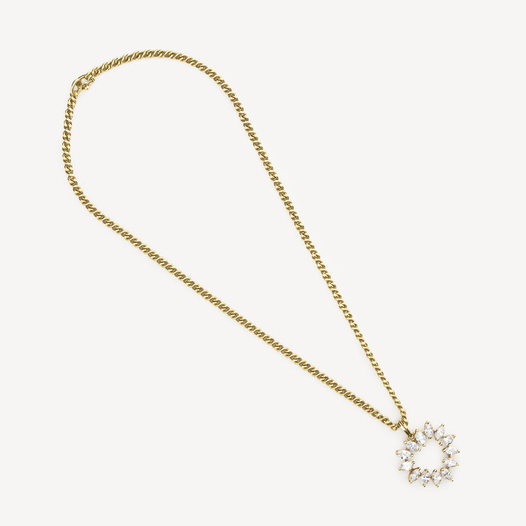 Collier en or jaune avec pendentif cœur orné de diamants marquises blancs.