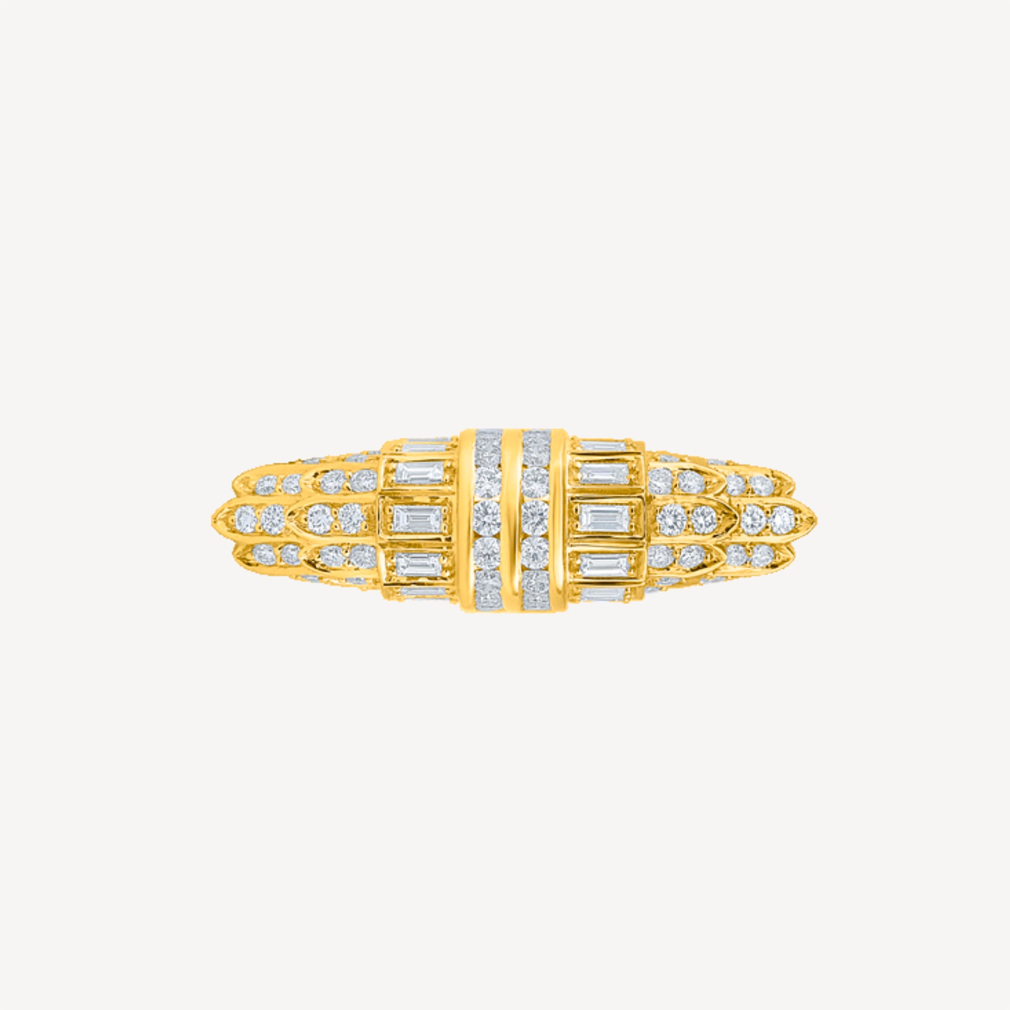 La bague City Lights Eternity en or et diamants signée Mirari incarne l'éclat urbain avec sa forme illustrant à la perfection le design de la collection Empire State. Confectionnée en or jaune noble, elle arbore une succession de diamants brillants qui capturent la lumière. Gardien de la lumière, le diamant protège et renforce l’esprit.